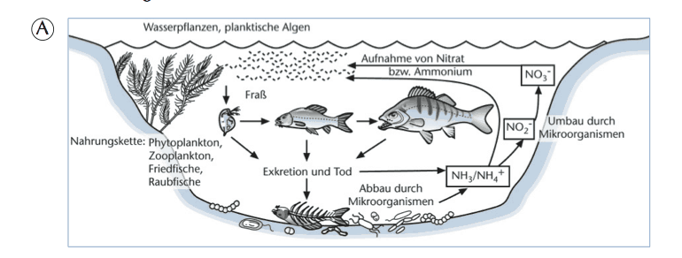 - CO₂: Kommt aus der Luft ins Wasser, wird von Fischen und beim Abbau organischer Stoffe produziert und ist für Pflanzen lebenswichtig.