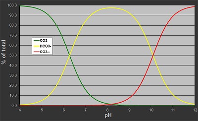 In natürlichen Gewässern – und damit auch im Aquarium – wird der pH-Wert hauptsächlich durch das Zusammenspiel von Karbonathärte (KH) und CO₂-Gehalt bestimmt.