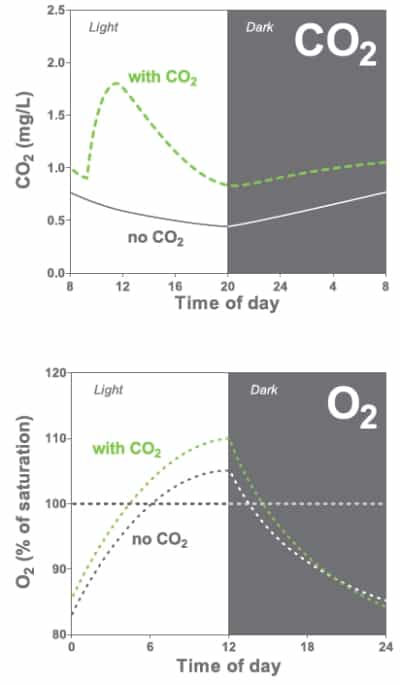- Mit CO₂-Anlage: Erhöht sich der CO₂-Gehalt, sinkt der pH-Wert automatisch.