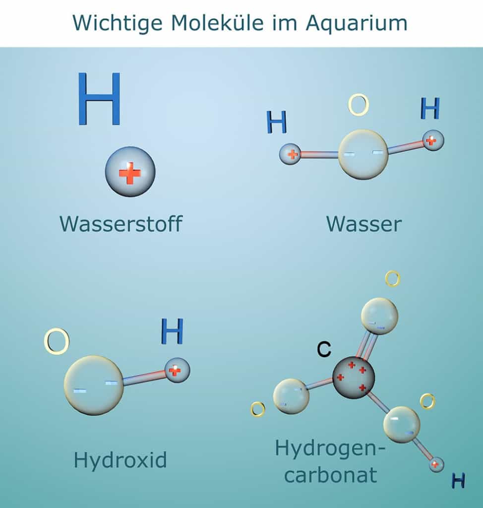 Beispiel: Hat Dein Wasser eine KH von 12 °dKH, sollte der pH-Wert für ein gutes Gleichgewicht zwischen 7,5 und 7,8 liegen. Im Wasser laufen dabei Umwandlungen ab: