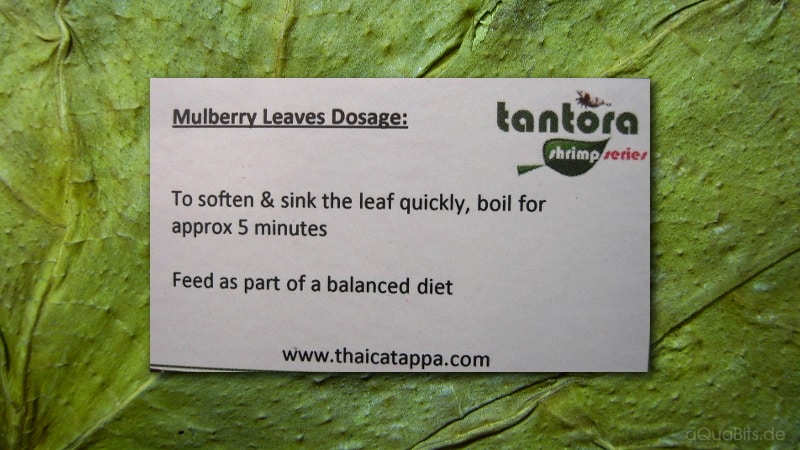 Maulbeerblätter sind wahre Kalziumbomben – kaum ein anderes Laub oder Gemüse enthält soviel davon und so wirken sie sich in dem Bereich schon mal sehr positiv auf den Panzer von Garnelen und Krebse aus als auch auf das Gehäuse von Schnecken. Weiterhin enthalten sie verschiedene bioaktive Flavonoide, Vitamine und Provitamine in recht großen Mengen.