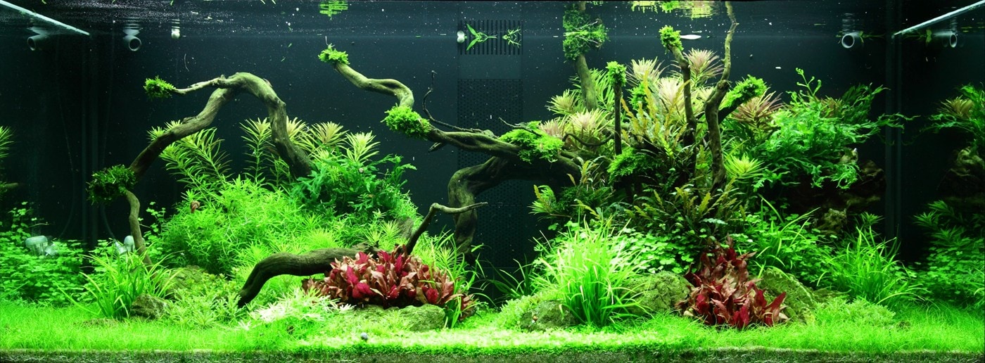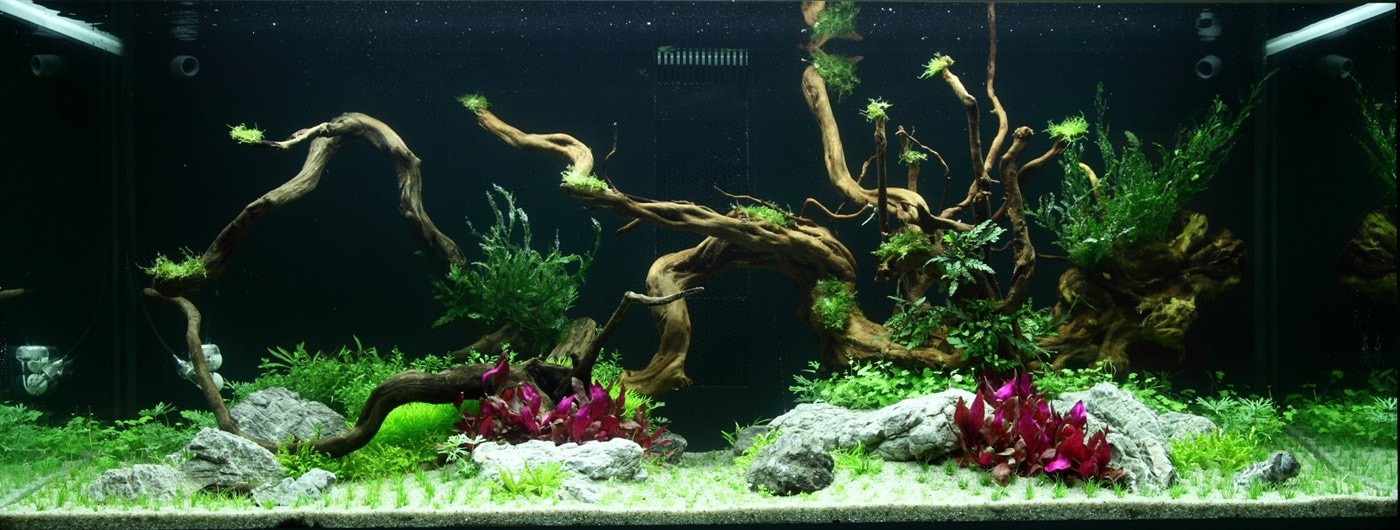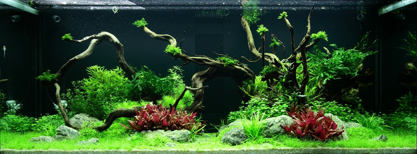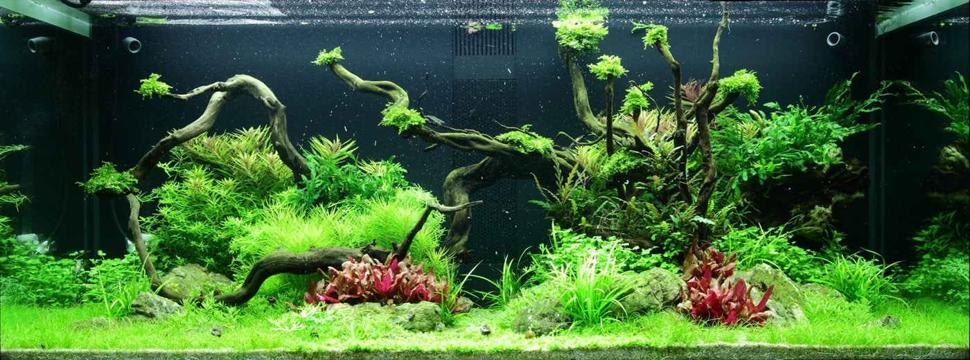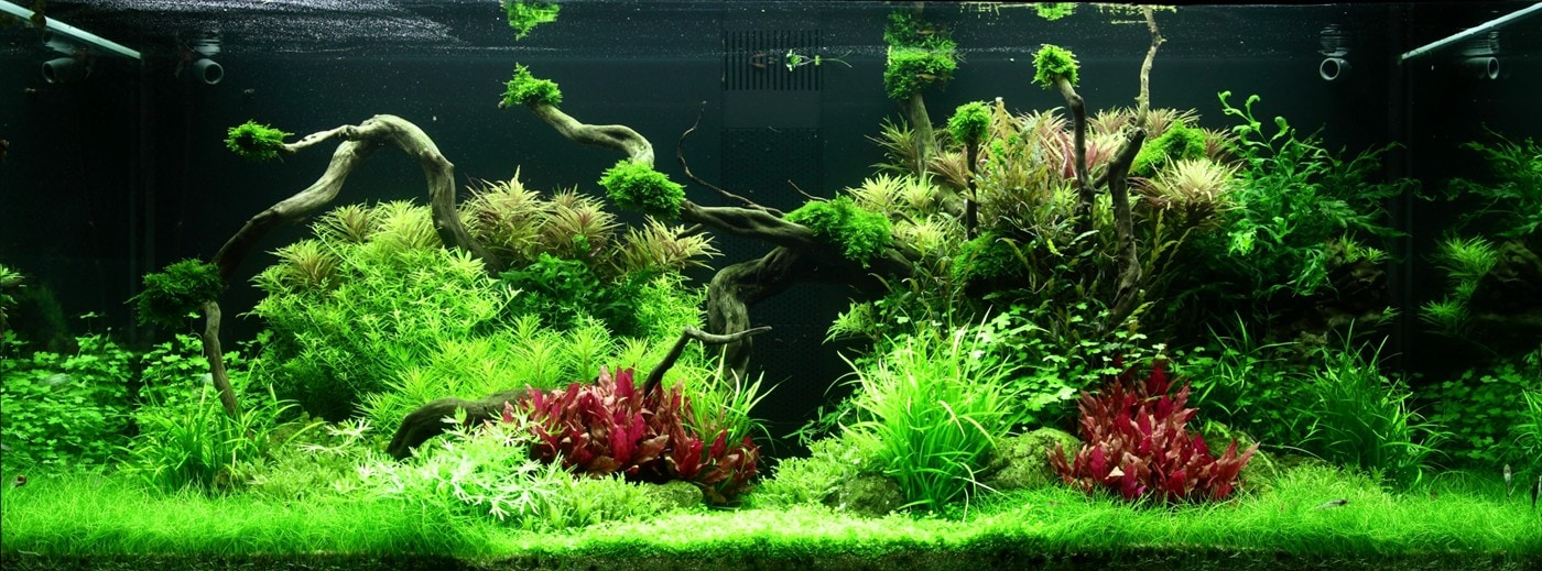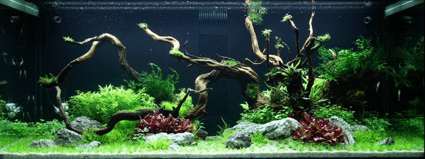Das kräftige Pink der Alternanthera ‚Rosanervig‘ wird sehr schön von der Limnophila hippuridoides darüber wieder aufgenommen.