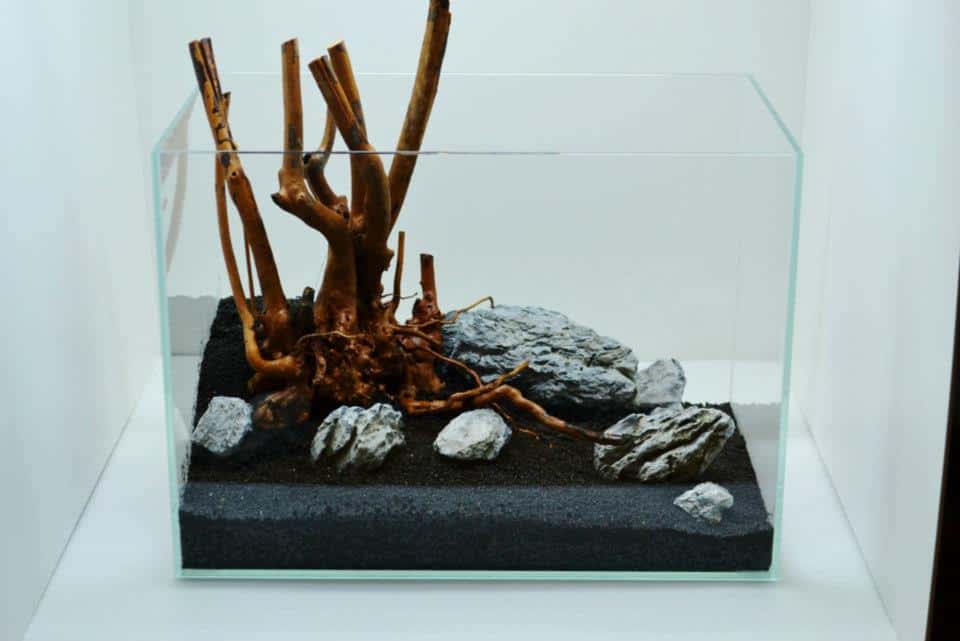 Die richtige Positionierung des Hardscapes ist äußerst wichtig, damit später nichts einstürzt oder verrutscht. Hier sollte man sich genug Zeit lassen. Bei der Verwendung von großen und schweren Steinen hat es sich bewährt, diese mit einem Stück Styropor zu unterfüttern um die Bodenplatte des Aquariums zu schützen. Dadurch wird der Druck vom Glas genommen und das Risiko einer kaputten oder zerkratzten Scheibe stark minimiert. Auch zum Thema Wurzeln gibt es einen wichtigen Tipp. Am Besten ist es, die Wurzeln vor dem Einsetzen gut zu wässern, damit sie sich vollsaugen und im Aquarium von selbst untergehen. Wenn man hierfür keine Zeit hat, kann man die Wurzeln auch mit einer Edelstahlschraube auf eine Schieferplatte aufschrauben. So kann man sich die Zeit des Wässerns sparen. Wenn sich zu Beginn ein watteartiger, wie Schimmel aussehender Belag bildet, so besteht hier kein Grund zu Panik: Dies ist ein harmloser Bakterienrasen, der von selbst verschwindet oder von algenfressenden Tieren, wie Garnelen oder Welsen gern verschmäht wird.