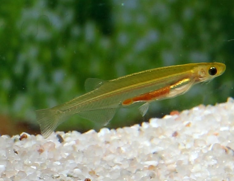 In einem Becken mit Corydoras pygmeus fanden wir mehrere dieser hell-gelb gefärbten Tiere. Sie sind nur etwa 1 cm groß und scheinen fast durchsichtig. Am Maul sind kleine Barteln erkennbar. Um welche Art könnte es sich handeln?