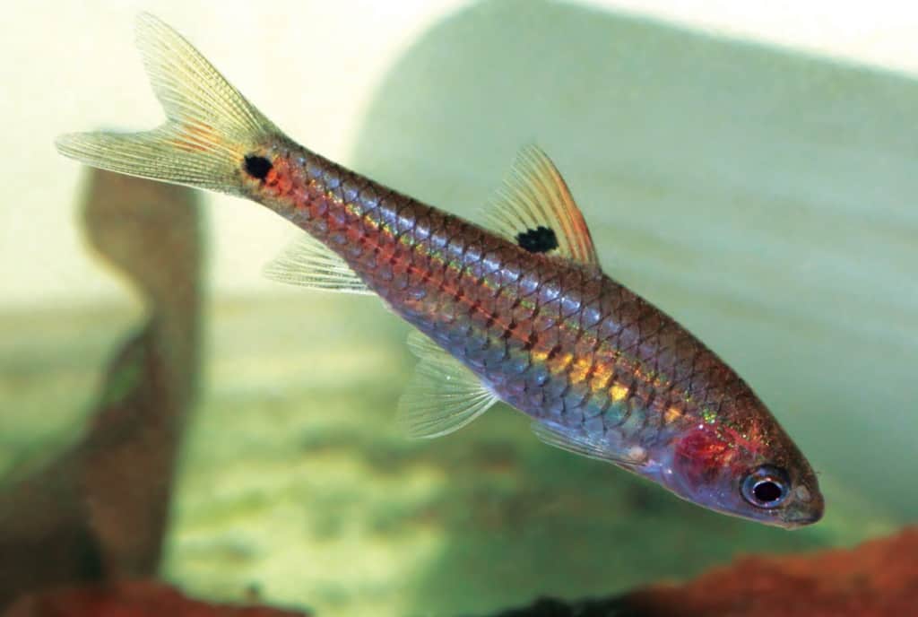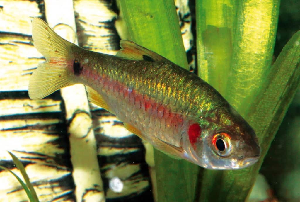 In der Nähe des Ufers konnte ich vereinzelt Exemplare von Lepidocephalichtys thermalis fangen. Diese Art ähnelt unserem einheimischen Schlammpeizger. Die Tiere sind friedlich und anspruchslos, konnten sich im Aquarium gegenüber anderen Schmerlenarten jedoch nicht behaupten. Aus diesem Grund empfehle ich, die Tiere Artaquarium zu pflegen. Sie nehmen jede Art von Trockenfutter an. Auf den ersten Blick erscheinen sie zwar etwas unscheinbar, machen das aber mit einem interessanten innerartlichen Verhalten und ihrer Anspruchslosigkeit wieder wett. Diese Art ist in Südindien weit verbreitet; ich fand sie in fast allen Habitaten. In Bächen leben sie oft in den schlammigen und flachen Uferbereichen. In stehenden Gewässern der Kulturlandschaft sind sie gewöhnlich die einzige Schmerlenart. Ich fing auch eine klein bleibende Barbenart, die nicht größer als 2 cm erreicht. Sie wurde anfänglich von den meisten Aquarianern als Puntius ticto abgetan. Dagegen sprachen jedoch die geringe Größe und die Punktierung. Puntius pokodensis sieht ähnlich aus, kommt allerdings in dieser Gegend nicht vor. Das wirklich besondere an dieser Art wurde mir jedoch erst durch ihre Pflege im Aquarium bewusst. Die Männchen färben sich leuchtend rot und ähneln stark Puntius manipurensis. Diese Barbenart kommt jedoch nur in Nordostindien vor. Dank Nikhil SOOD gingen einige Exemplare an Marcus KNIGHT, einen Spezialisten für Barben. Dieser bestätigte meine Annahme, dass es sich um eine neue Art handelt. Meines Wissens arbeitet er gerade an einer Beschreibung. Ich hoffe wirklich, dass diese seltene Art (ich fing insgesamt nur etwa zehn Exemplare in mehr als zwei Jahren) ihren Weg in die Hände von Züchtern findet. Sie wäre eine wirklich interessante Bereicherung gerade für die Nano-Aquaristik. Im Aquarium hielt sich die Barbe bei mir in weichem, leicht saurem Wasser sehr gut. Allerdings war sie ohne ausreichende Deckung sehr scheu. Nach einiger Zeit änderte ich meine Fangstrategie; ich überwand meine Vorbehalte gegenüber tropischen Krankheiten in stehenden Gewässern und ging in den Teich. Ich bewegte