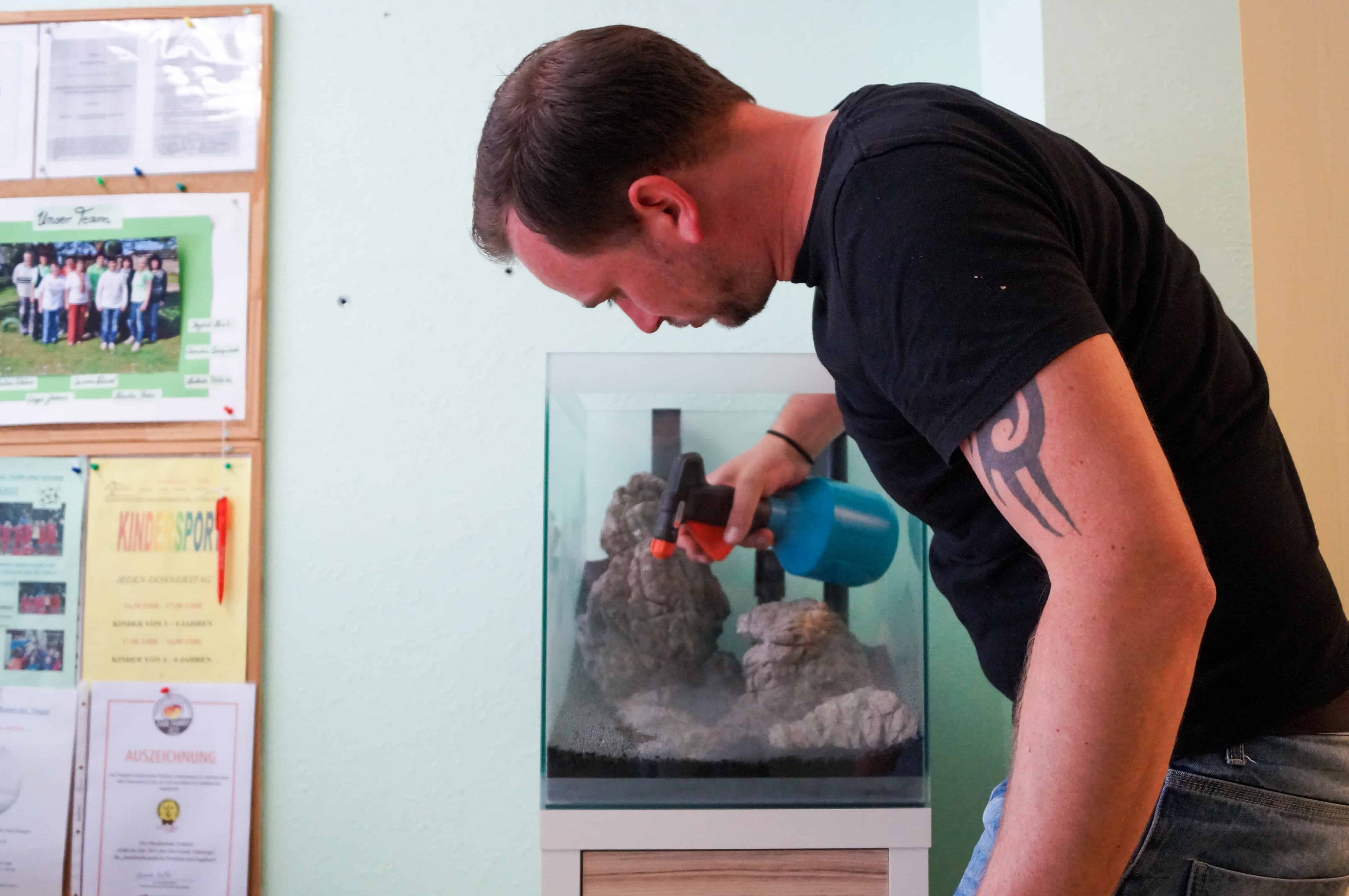 Gemeinsam mit Frederic Fuss, dem Aquariengestalter, wurden Spenden gesammelt und das Aquarium eingerichtet. Die Einrichtung fand im September statt.