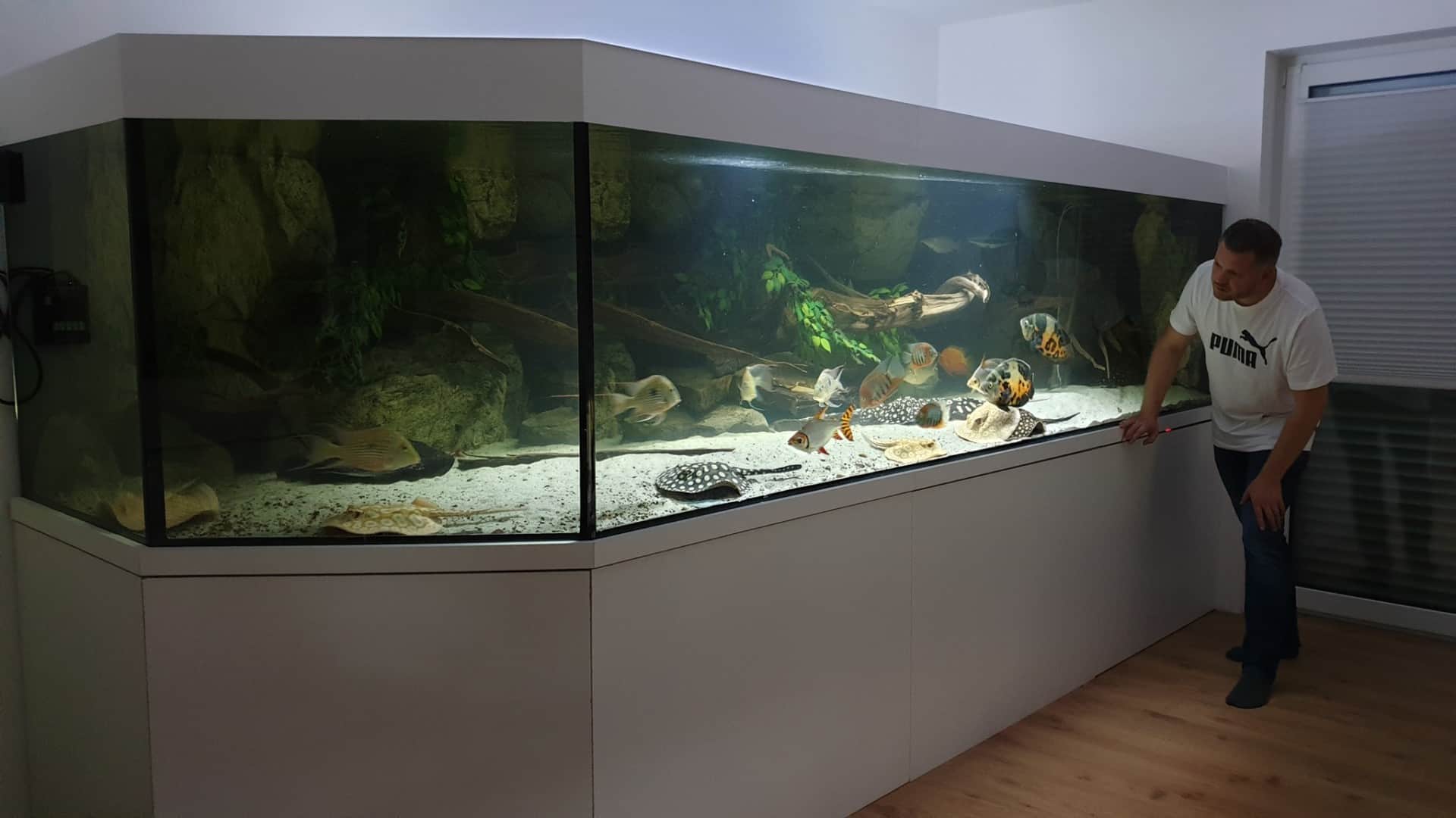 Du denkst, dass dein Aquarium mit 450 Litern schon den Titel „XL Aquarium“ verdient hat? Thorben pflegt Rochen und andere große Fische und sagt stolz, ein X steht für 1.000 Liter. XXL sind daher mehr als 2.000 Liter. Mit mehr als 11.500 Liter Gesamtvolumen, kann dies der Großaquarianer mit Stolz behaupten.