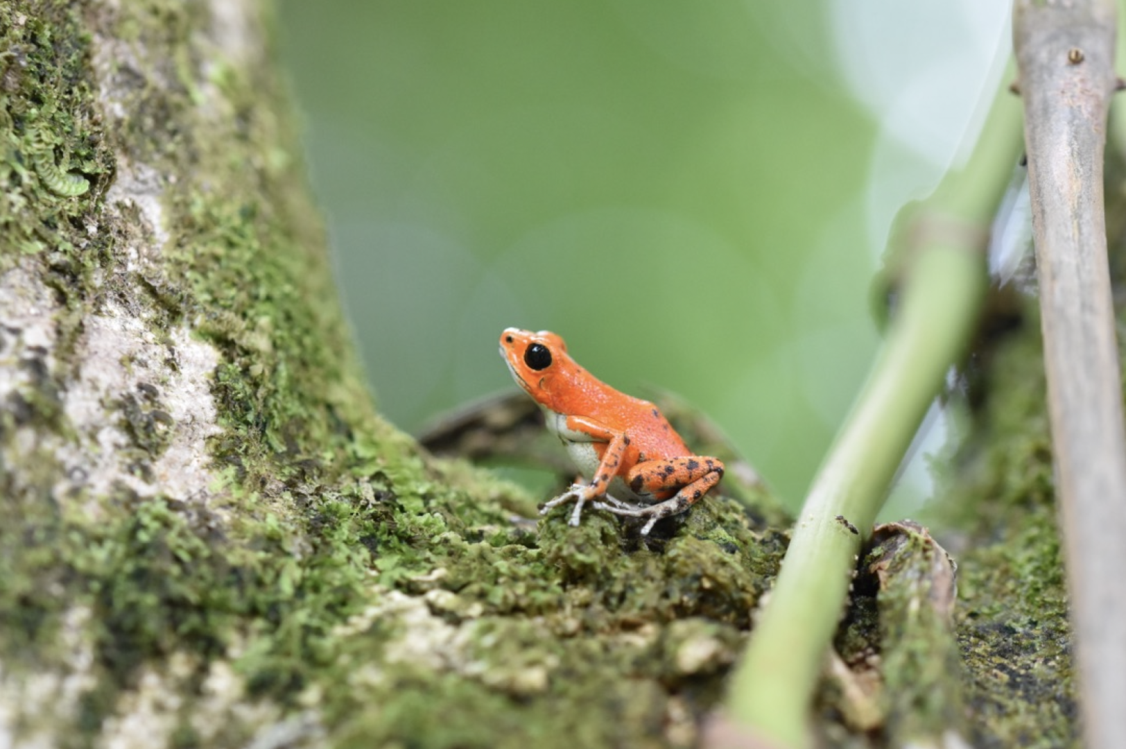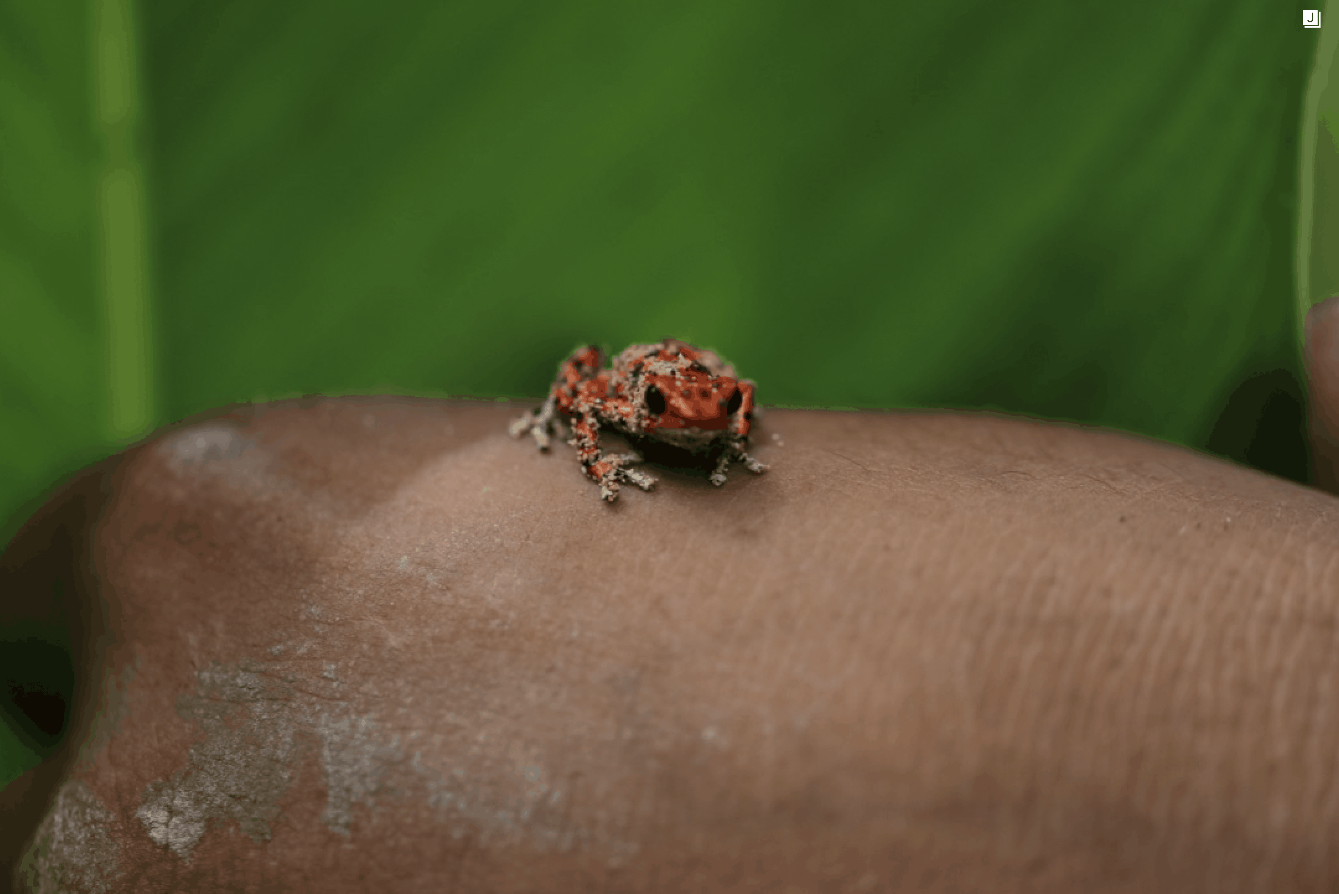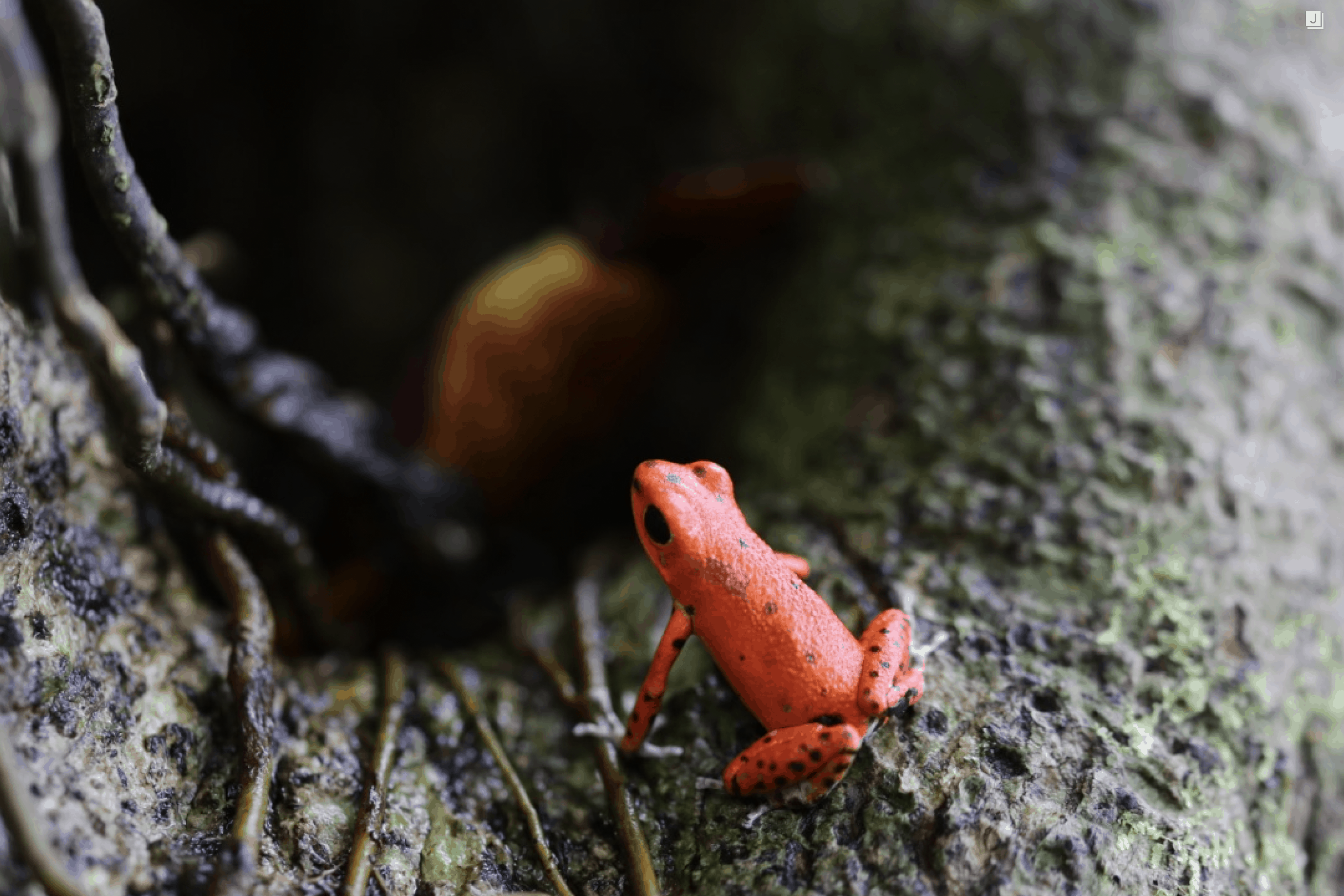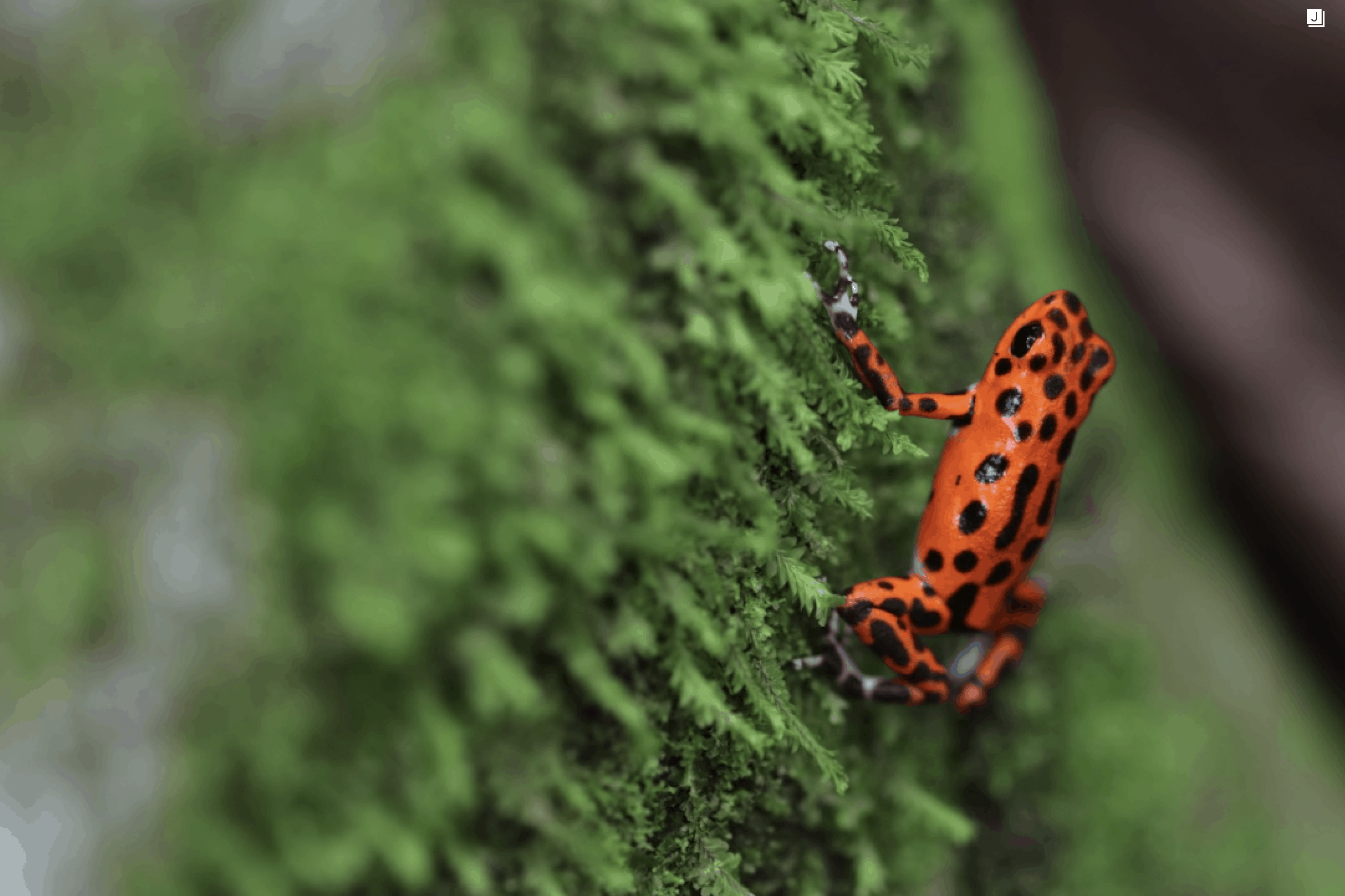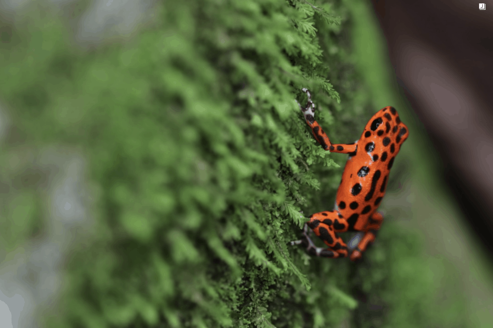 Die kleinen bunten Frösche, die feuchte Lebensräume benötigen, sind in bunten Farben und unzähligen Farbgebungen zu finden.