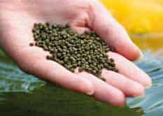 Für den Teichbesitzer bildet eine artgerechte Ernährung eine Gewähr, dass seine Fische gesund (und nicht unbedingt schnell!) wachsen, prächtige Farben ausbilden und widerstandsfähig gegen bakterielle, virale und parasitäre Krankheitserreger sind. So wie Kühe kein Fleisch und Koalabären keine Schokolade verdauen können, so ergeht es auch den Teichfischen. Nicht alle Teichfische benötigen das gleiche Futter und auch das Lebensstadium (jung/alt) spielt eine Rolle. Ein weiterer sehr wichtiger Punkt ist die Verwertbarkeit des Futters. Hundebesitzer kennen die Problematik: Billiges Futter führt zu riesigen Kothaufen und der Hund kann trotzdem Mangelerscheinungen zeigen. Bei Fischen führt ungeeignetes Futter zu identischen Folgen, über die sich dann zwar kein Fußgänger ärgert, das Teichwasser aber extrem mit Schadstoffen belastet. Dies wiederum führt dann zu Algenproblemen, die nun wirklich niemand liebt. Deshalb sollte man sich vor dem Kauf von Futter gut informieren und beraten lassen, um für die Tiere ein geeignetes Produkt auszuwählen. Sollten Sie mehrere Fischgattungen oder Arten in einem Teich pflegen, und das machen die meisten, so stellt sich natürlich erst einmal die Frage, wie man denn die Fütterung nach Arten getrennt vornehmen soll. Das ist in sogenannten „Gesellschaftsteichen“ schlichtweg unmöglich. Bei einer Sammlung verschiedener Familien und Arten in einem Teich ist es aber dennoch wichtig, eine Bandbreite an Futter anzubieten, die allen gerecht wird. Nur so sind Mangelerscheinungen und Krankheiten zu vermeiden. Sogenannte Forellenpellets sind zur Mast von vornehmlich fleischfressenden Fischen gedacht und damit für überwiegend vegetarisch lebende Teichfische nicht geeignet.
