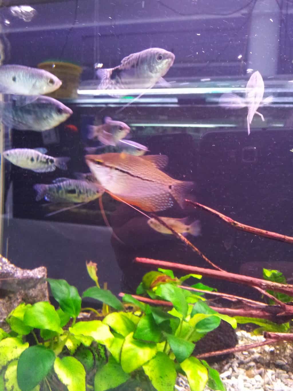 Gleichzeitig bekam ich von meinen Eltern ein Paar blaue Fadenfische. Das war für mich eine gute herausforderung. Wie kriege ich wohl nur die winzigen Jungfische gross. Da begann ich mit diversen Futter Testreihen zu starten. Staubfuuter, kleinste Artemien, Flüssigfutter selbst gemacht und Rädertierchen. Das zweite Gelege war dann nicht mehr allzu schwer.