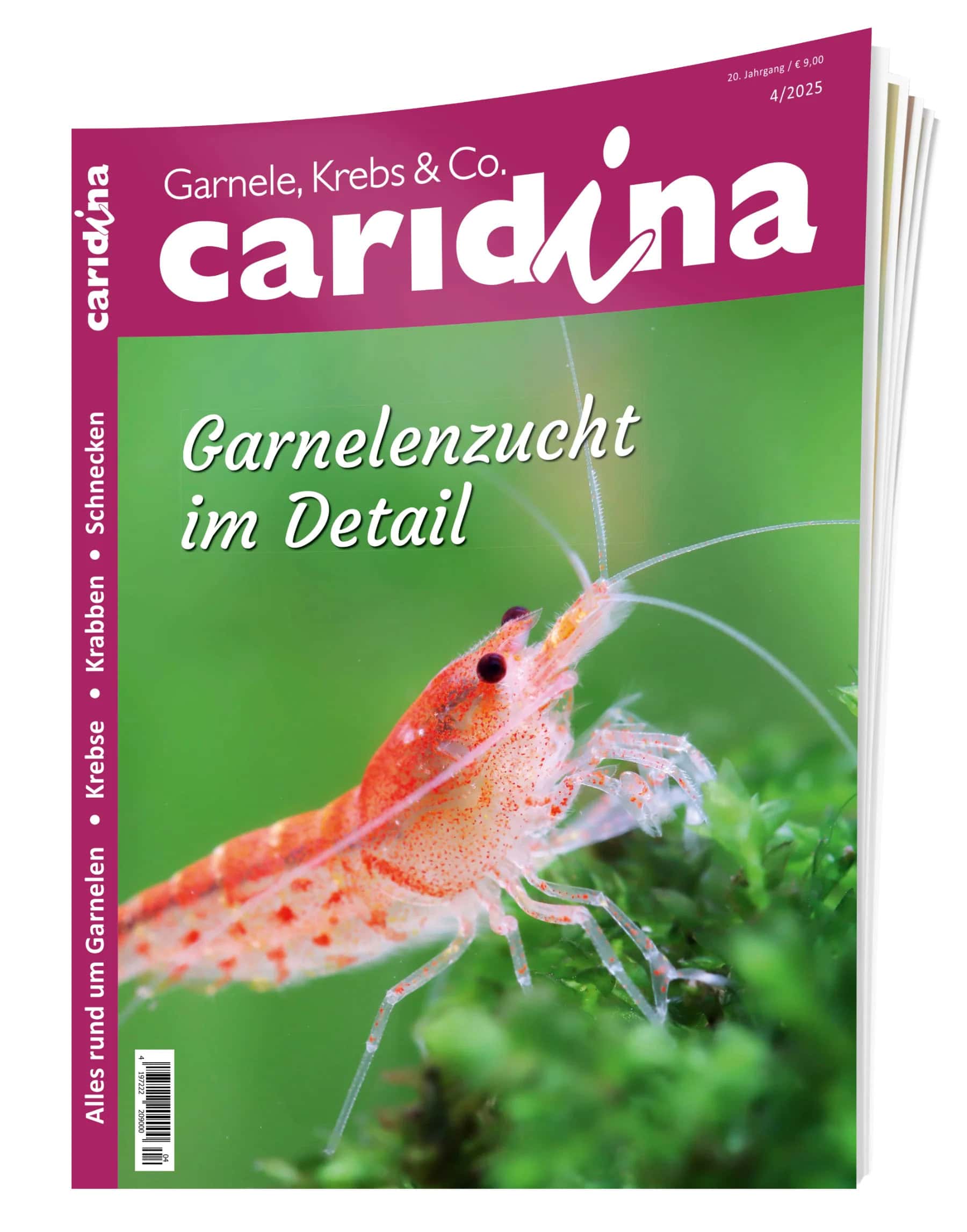 Das Magazin Caridina ist das führende Fachmagazin für Aquarianer, die sich auf die Haltung, Zucht und Pflege von Garnelen, Krebsen, Schnecken und anderen Wirbellosen spezialisiert haben. Es begleitet Hobbyisten von den ersten Schritten bis hin zu professionell gepflegten und zuchtfähigen Linien. Mit liebevoll gestalteten, gut bebilderten Beiträgen, praxisnahen Tipps und fundiertem Fachwissen ist es sowohl für Einsteiger als auch für erfahrene Züchter ideal.
