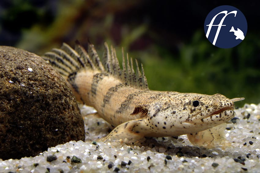 Beim Polypterus endlicherii, eine Flösselhecht-Art, sind noch die äußeren Kiemen sichtbar sind.