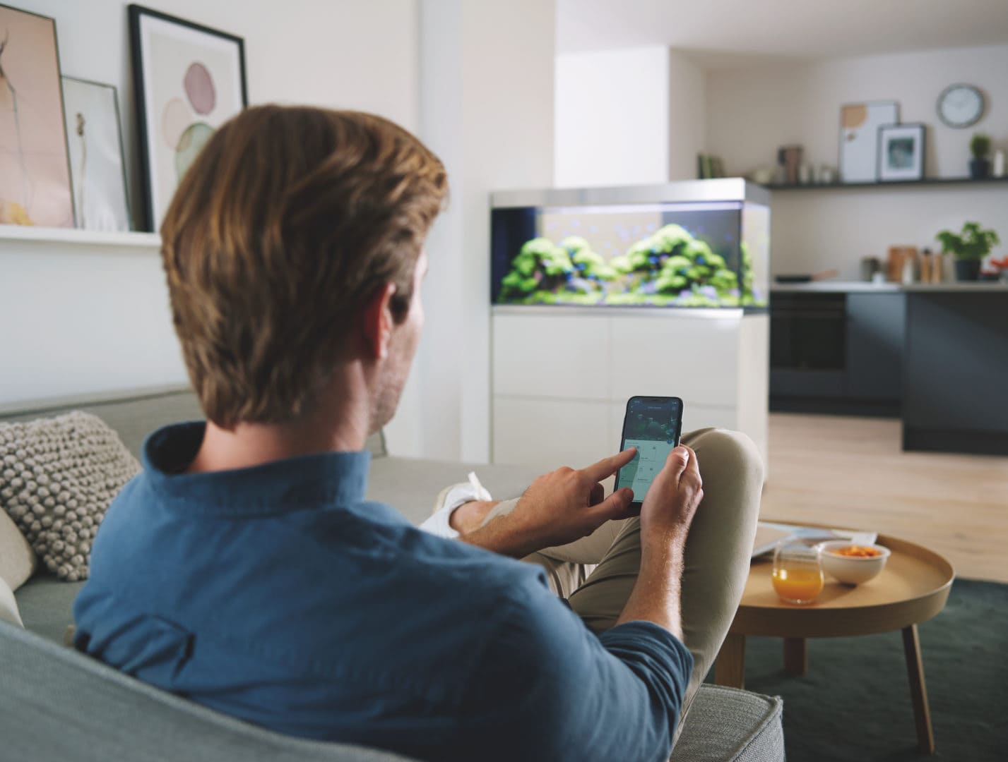 Durch die Anbindung an die App können die Lichtverhältnisse mit verschiedenen Lichtfarben und Stimmungen sowie die Strömungspumpe für eine naturgetreue Wasserbewegung konfiguriert und kontrolliert werden, auch der Fütterungsmodus kann individuell eingestellt werden. Zudem erhält man Status- und Fehlermeldungen per E-Mail oder Push-Benachrichtigung in Echtzeit. Das bedeutet Sicherheit für die Fische und mehr Zeit für den Besitzer, das Aquarium und seine gesunden und vitalen Bewohner auch zu genießen.