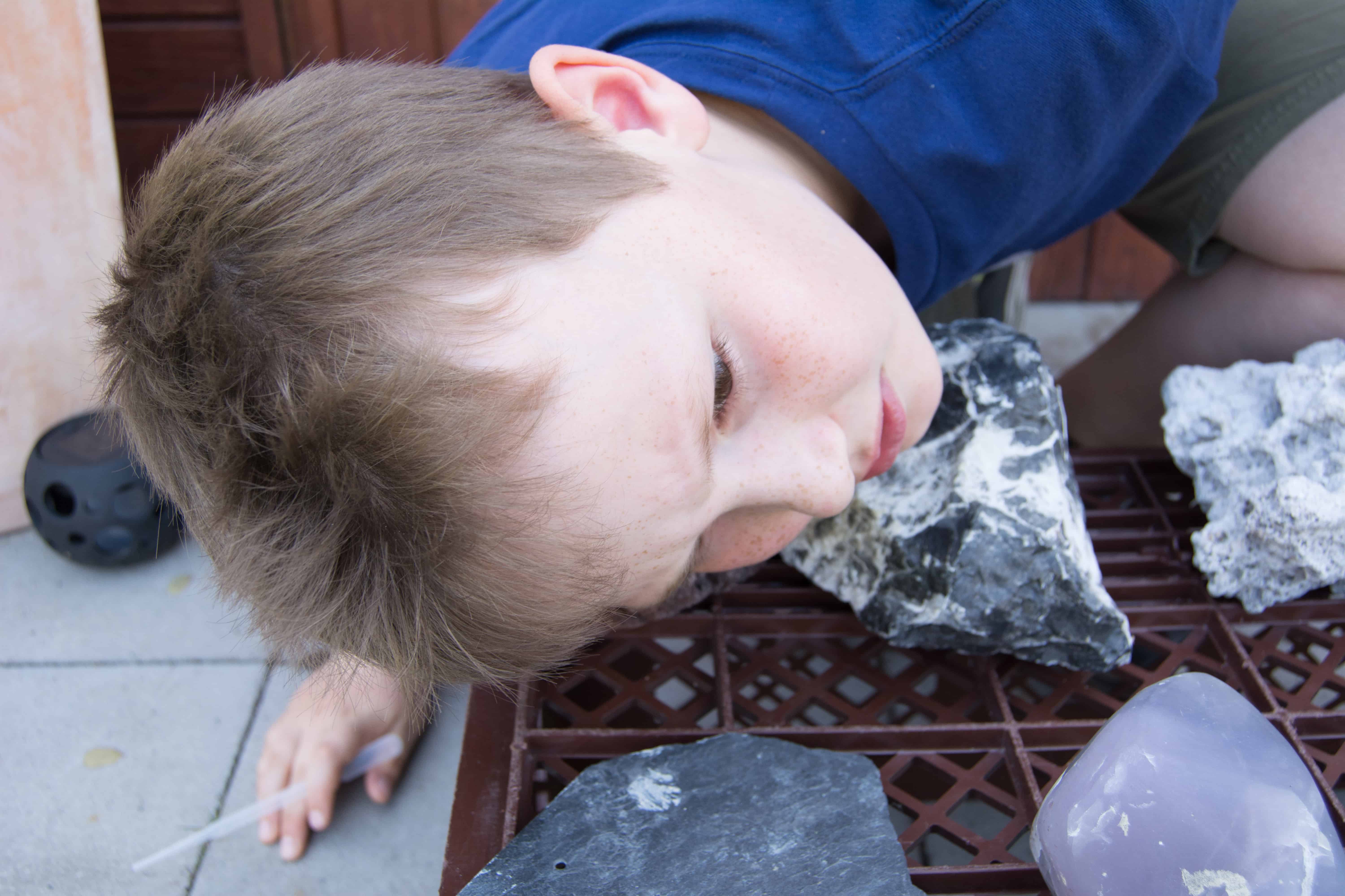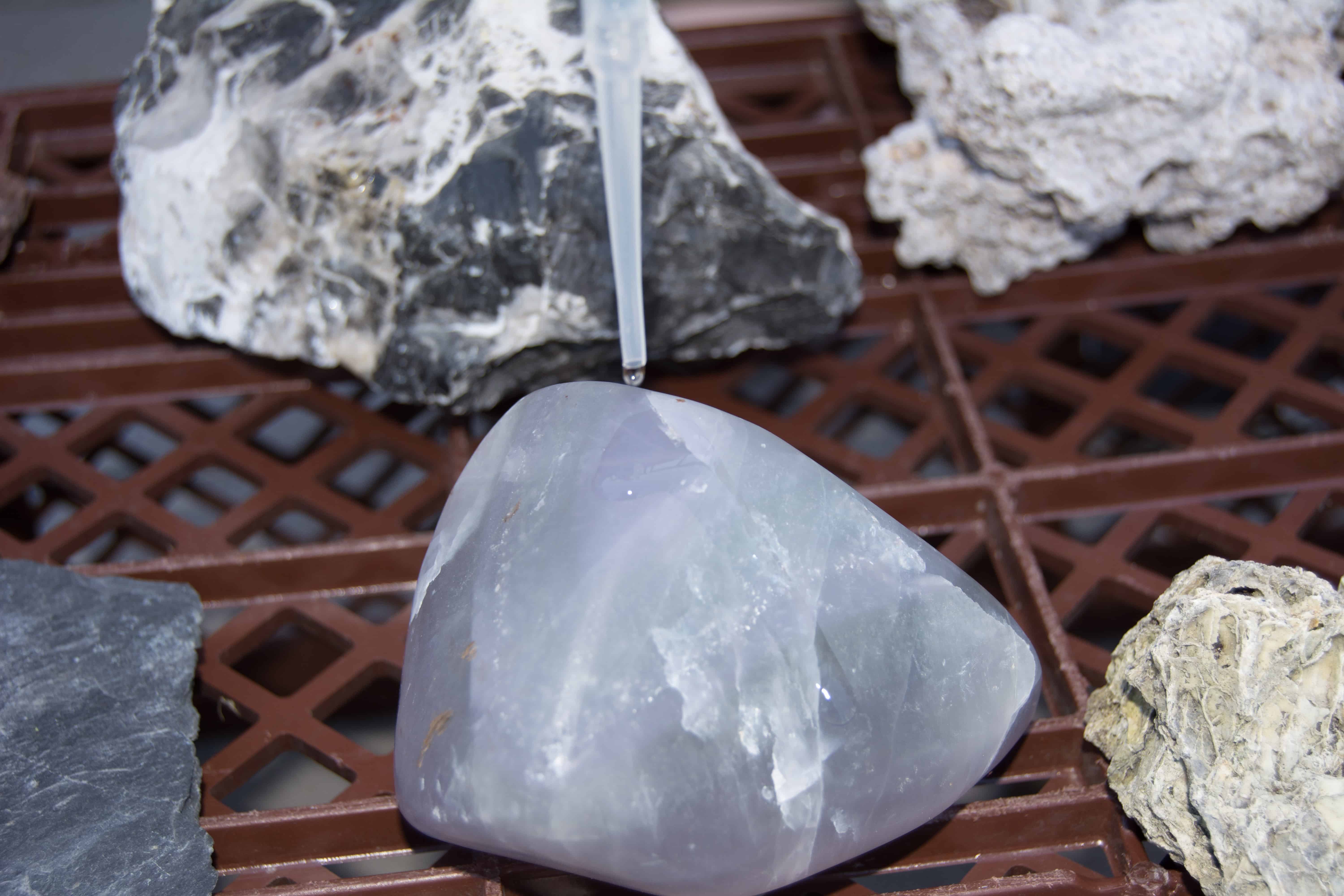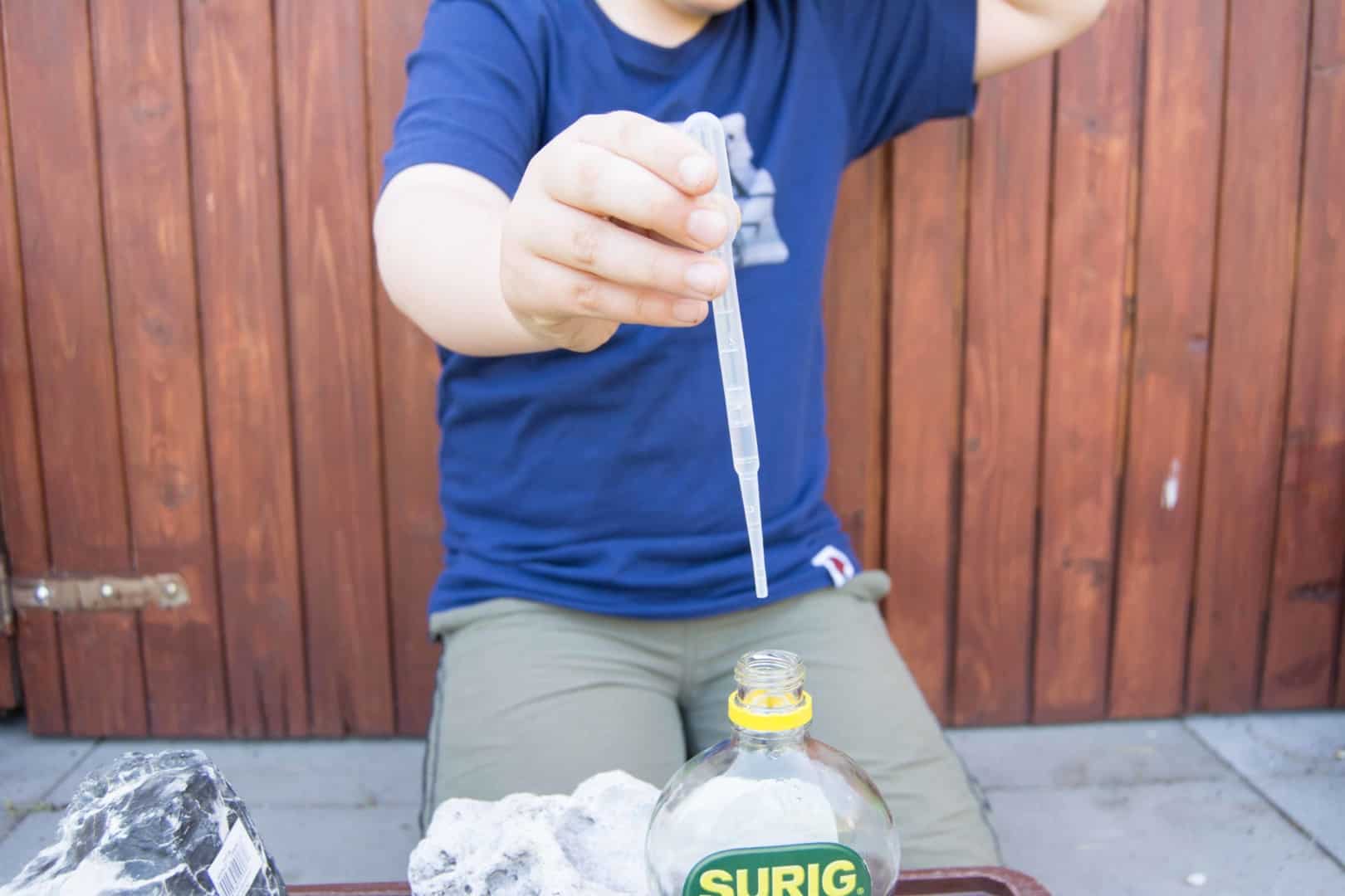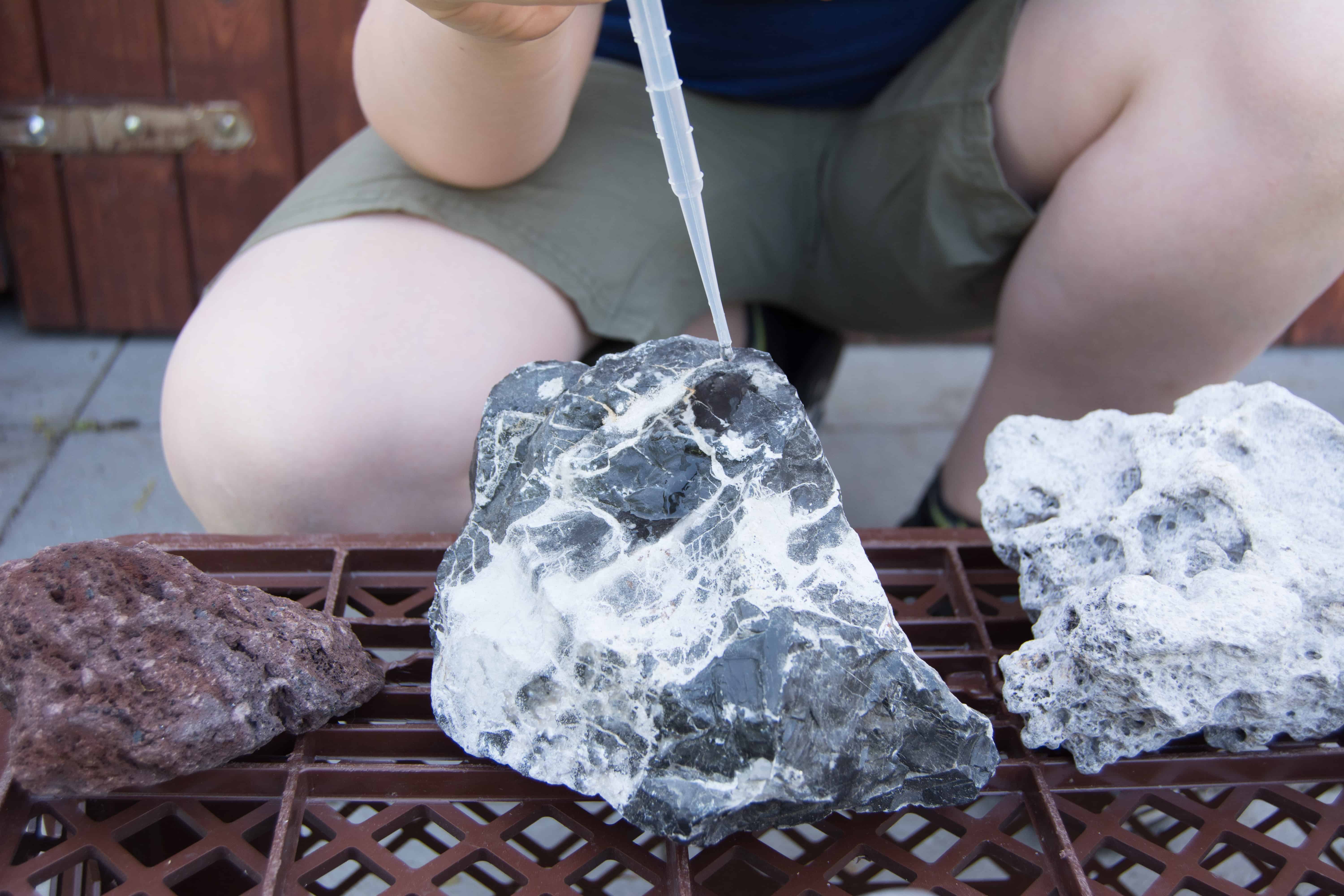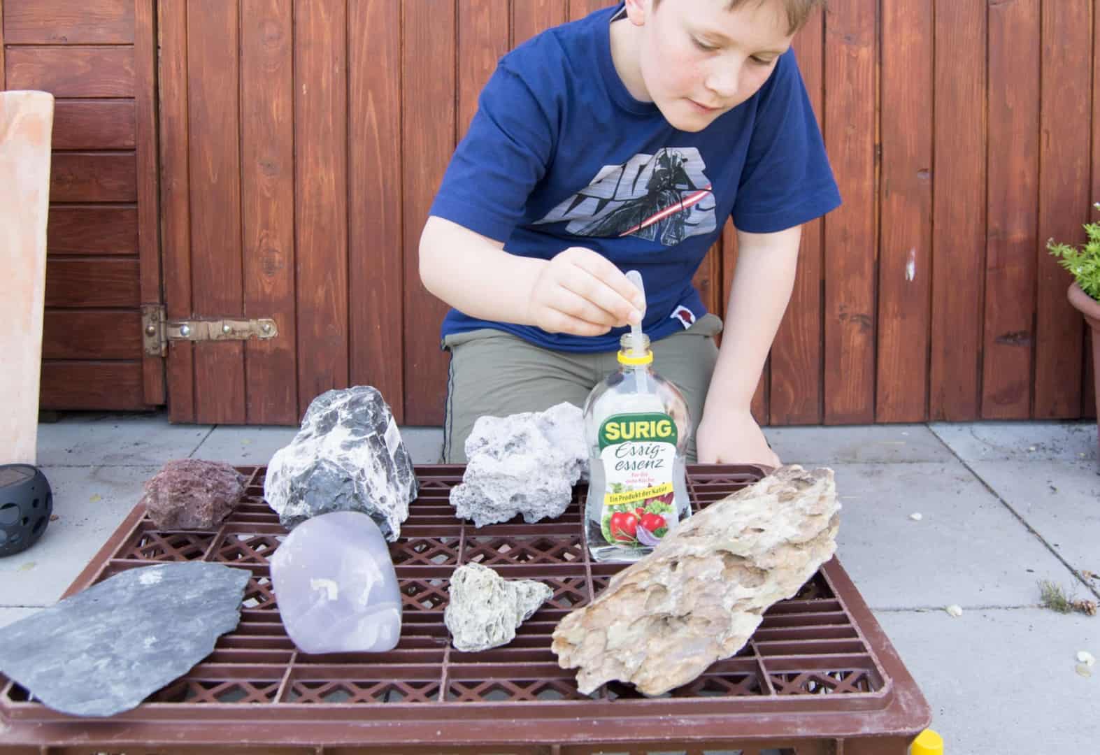Ob die Steine, die du verwenden möchtest, Kalk enthalten, kannst du ganz leicht mit einem Test herausfinden. Den Test kannst du bei gekauften aber auch bei gesammelten Steinen zur Kontrolle machen. Du solltest den Versuch gemeinsam mit deinen Eltern machen.