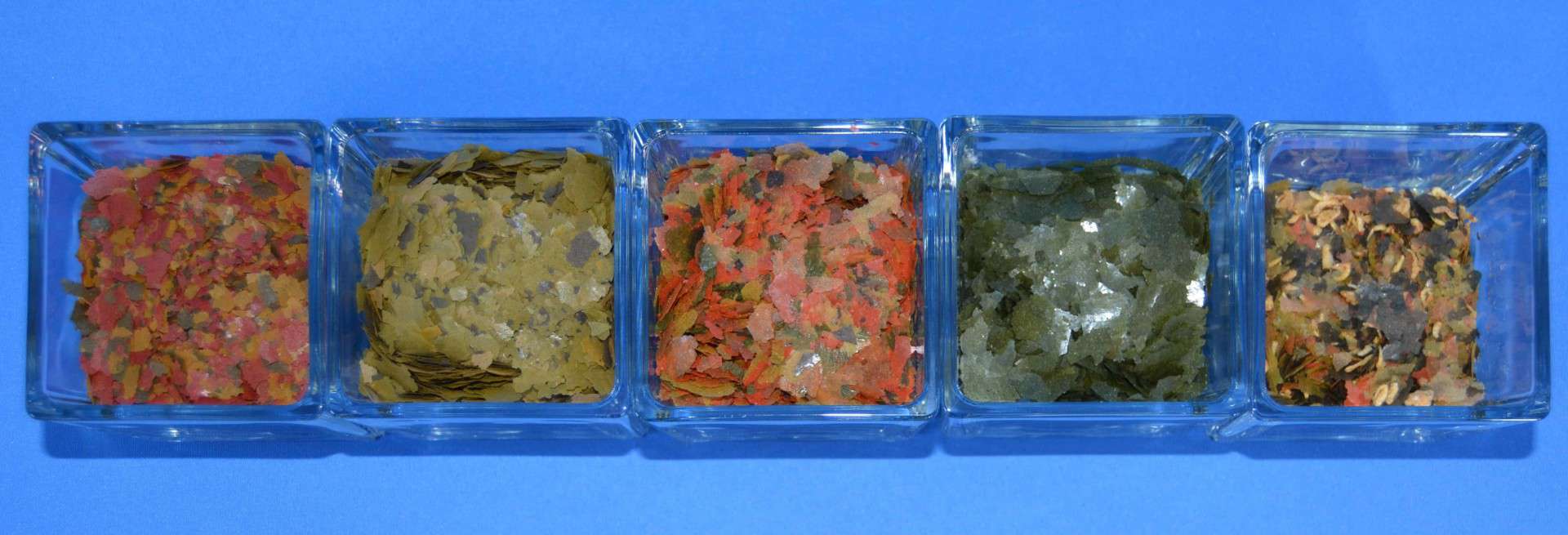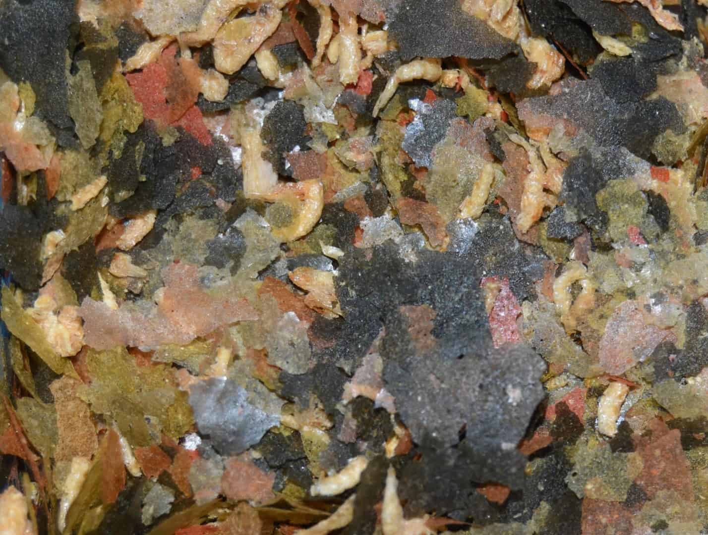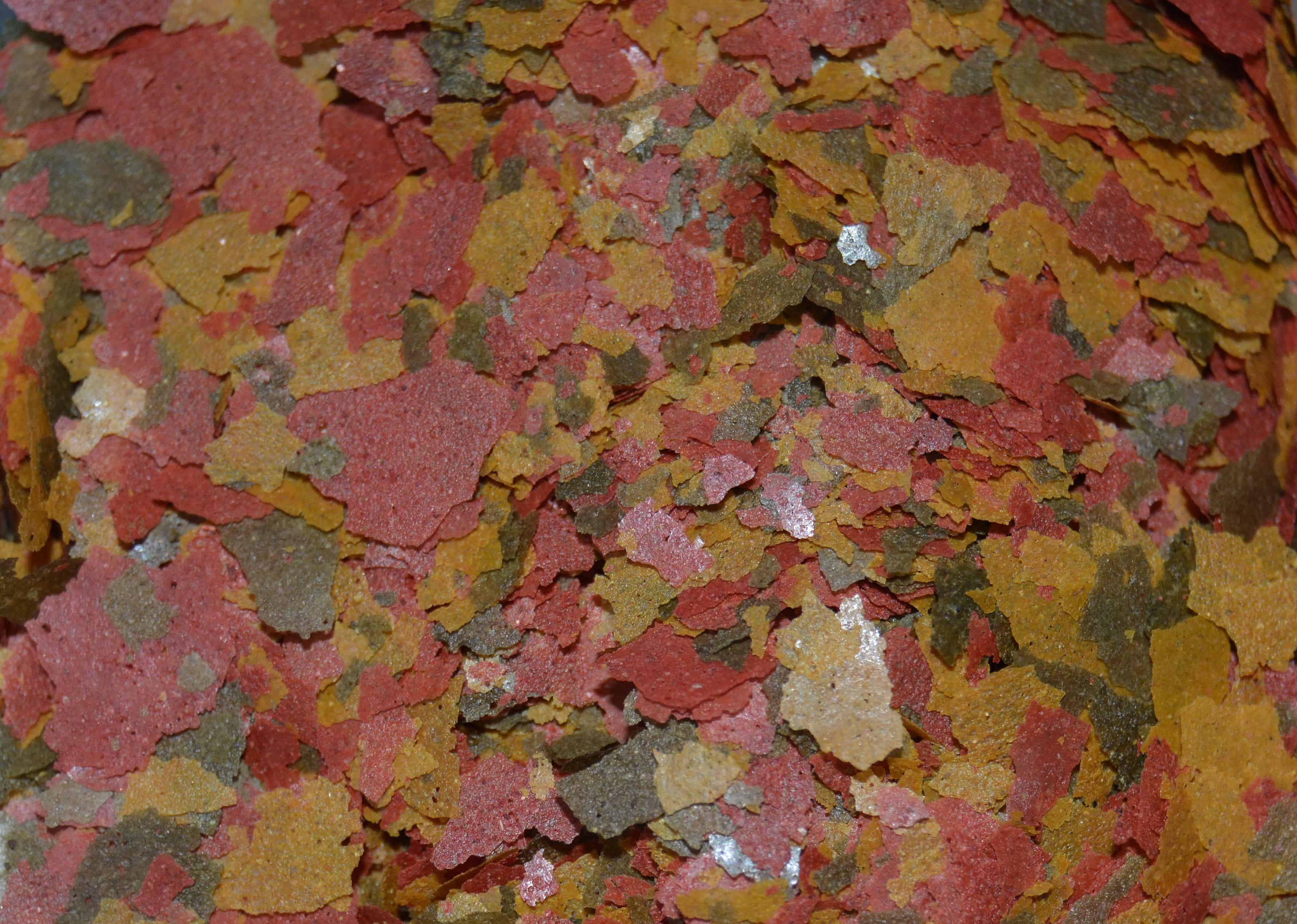 Im Handel findest du eine große Auswahl an Fischfutter in unterschiedlichen Formen. Viele nutzen sogenanntes Flockenfutter, das – wie der Name schon sagt – aus hauchdünnen Flocken besteht. Sie können unterschiedliche Farben haben und beinhalten Inhaltsstoffe, die auf die Fische abgestimmt sind. Das erkennst du mit dem bloßen Auge. So wie Spinat grün und Fleisch rosa ist, nehmen die Flocken die Farben der Zutaten an. Tierische und pflanzliche Bestandteile wie Getreide, Algen und Fischmehl, aber auch Gemüse, Eier und Vitamine kannst du darin finden. Viele Futtersorten haben über 50 Zutaten, klasse oder? Mehr Informationen dazu findest du auf den Dosen. Hast du sehr kleine Fische, kannst du die Flocken leicht zwischen den Fingern zerreiben, um sie maulgerecht zu machen.