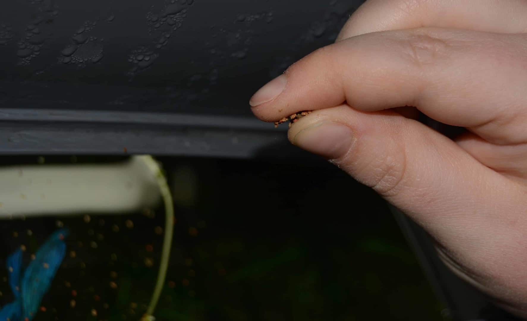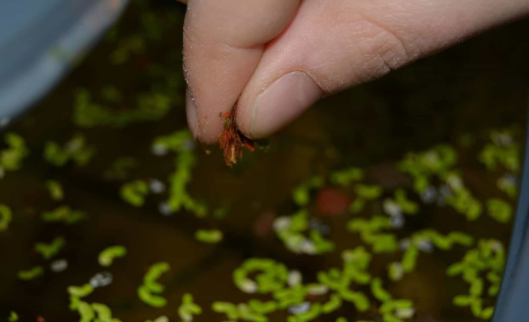 Vielleicht habt ihr im Garten eine Regentonne – in der findest du sicherlich Mückenlarven und andere Wasserlebewesen. Fische fressen was ins Maul passt, daher bedenke: Sehr große Mückenlarven können von sehr kleinen Fischen nicht gefressen werden und es kann passieren, dass die Larven sich in deinem warmen Aquarium schnell zu Stechmücken entwickeln – und einen Mückenstich magst du sicher nicht bekommen.