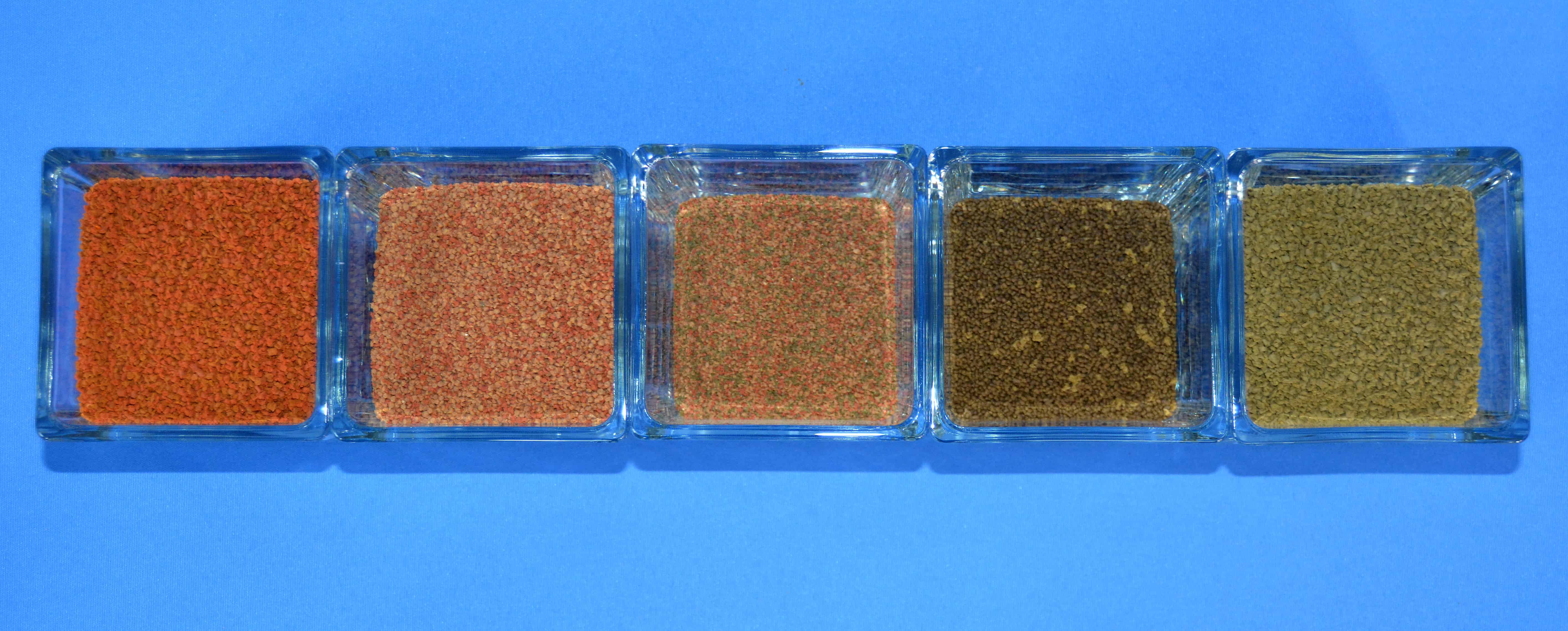 Granulat sinkt relativ schnell (wie Sandkörner im Wasser) und eignet sich daher gut für Fische, die ihr Futter in der Natur in den mittleren Wasserschichten aufnehmen. In deinem Aquarium also eignet sich das Futter für die Tiere, die sich in der mittleren Zone aufhalten. Welches Futter deine Fische brauchen, verraten dir die Maulformen (mehr über Maulformen erfährst du hier).