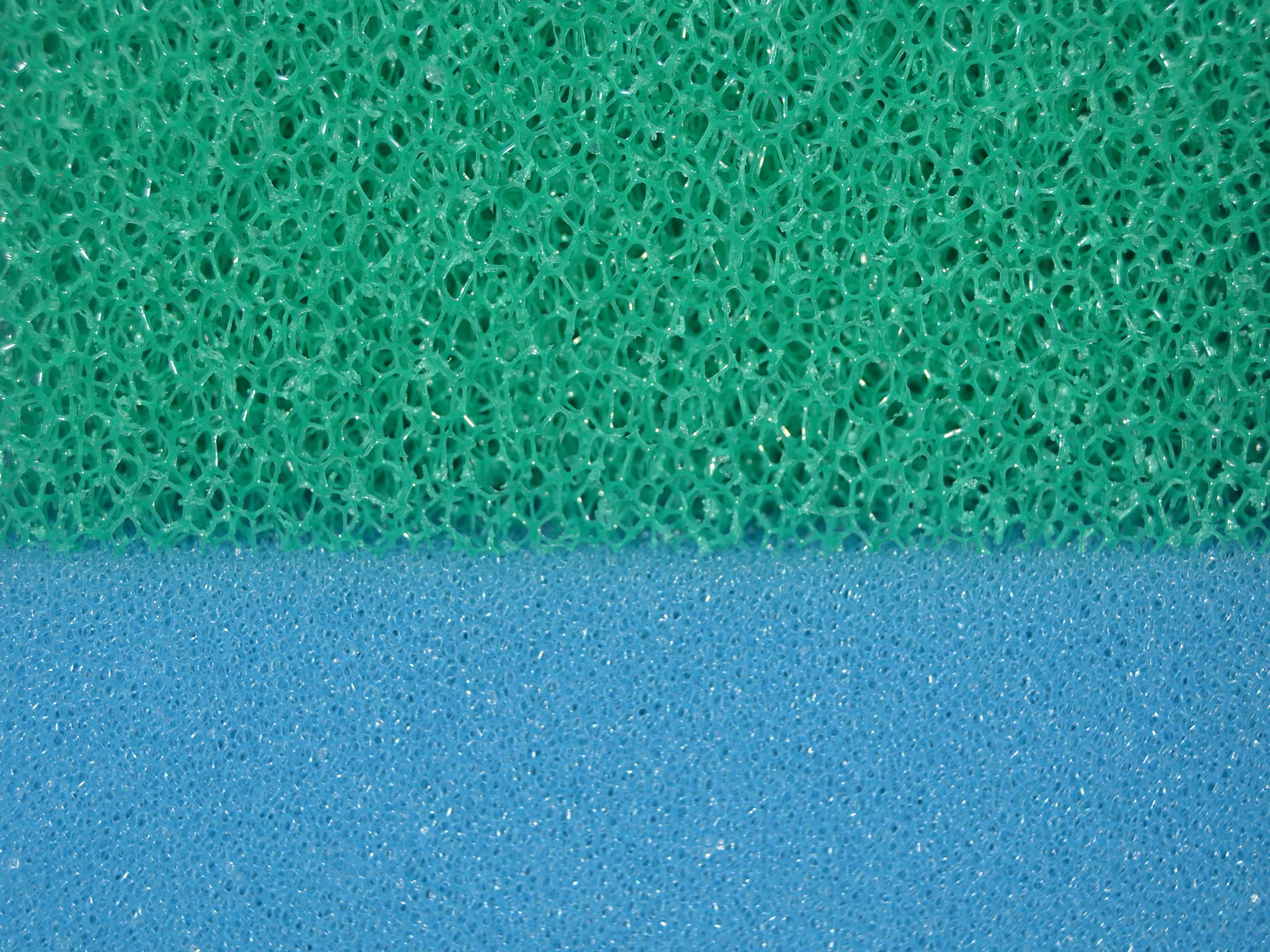 Filtermatten gibt es meistens in blau oder schwarz und in verschiedenen Porengrößen. Die Maßeinheit nennt man PPI. PPI ist die Abkürzung für „Poren pro Inch“. Inch ist eine englische Maßeinheit: 1 Inch sind 2,54 cm. Dabei stehen kleinere Zahlen für grobes Material und hohe Zahlen für feines Filtermaterial. Ein Beispiel: 10 PPI = grober Schwamm; 30 PPI = feiner Schwamm.