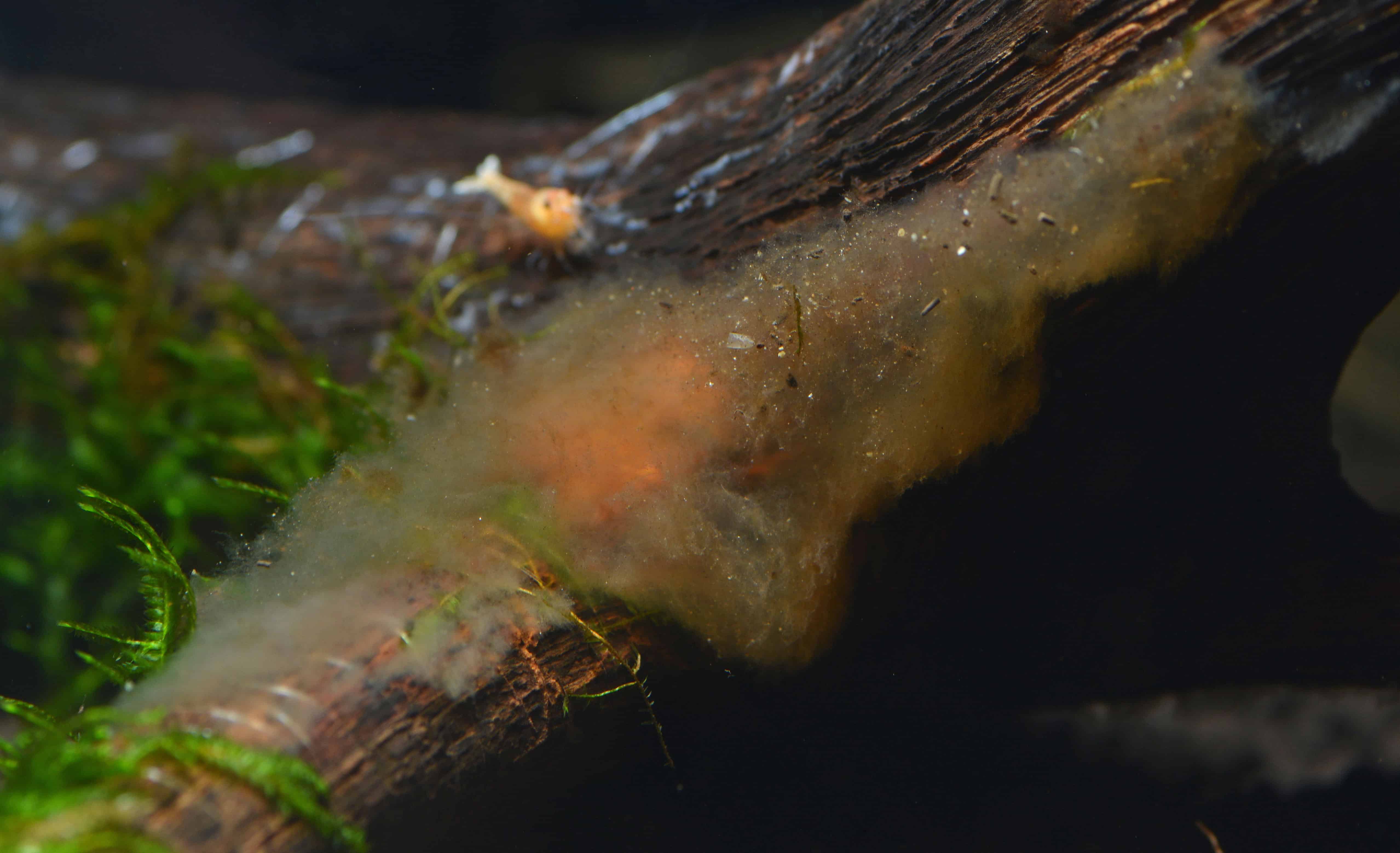 Eventuell siehst du auch die ersten Algenbüschel auf deiner Holzwurzel oder den Steinen. Das ist anfänglich normal und verschwindet nach einiger Zeit. Wird es zu viel, kannst du sie mit einer alten Zahnbürste wegputzen. Aber auch schleimige Beläge auf deinem Holz zeigen, dass erste Bakterien beginnen sich zu vermehren und Nahrung finden.