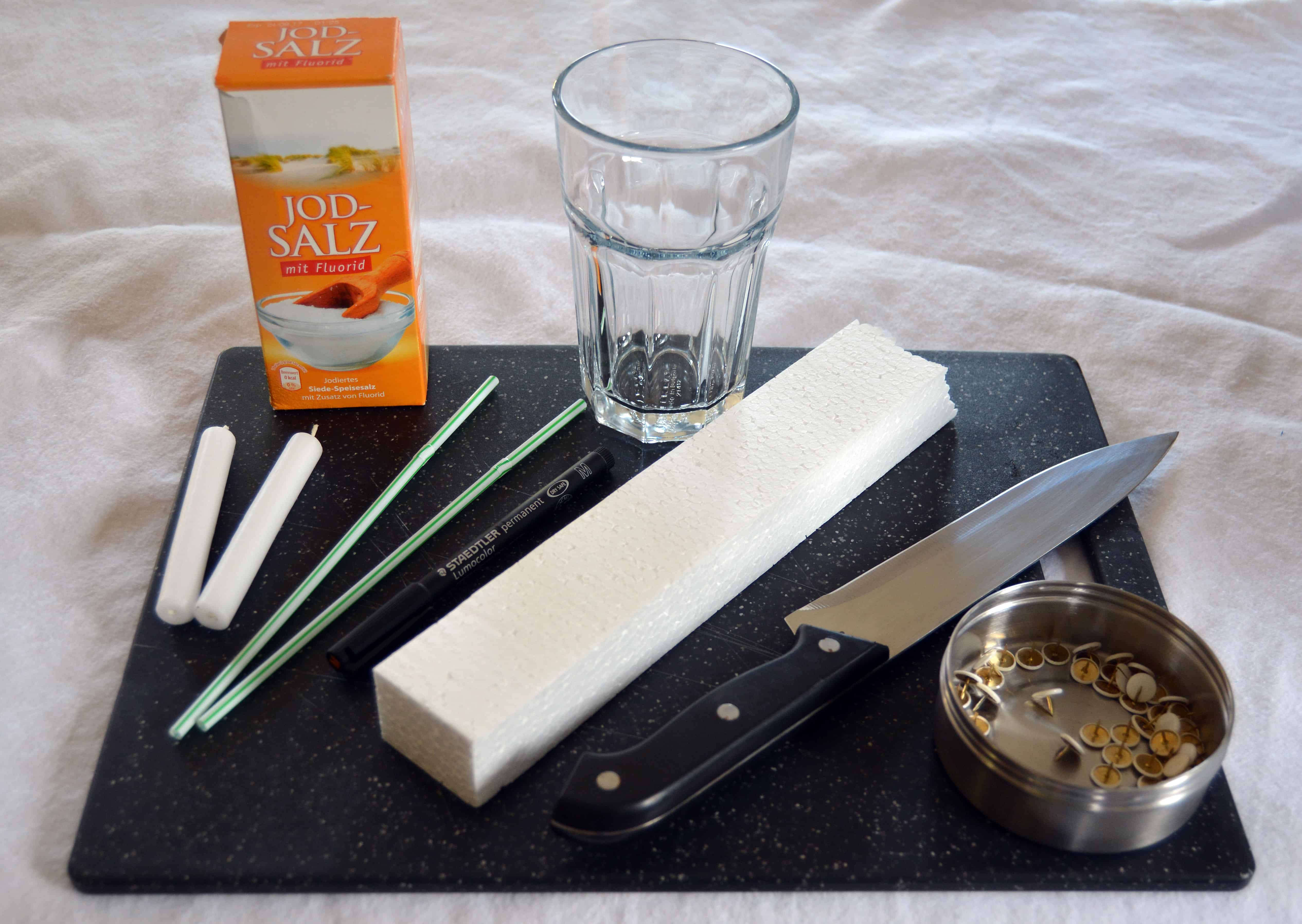 Damit das Monster später sinkt, beschweren wir es am anderen Ende der Kerze mit Reißzwecken oder kleinen Nägeln.