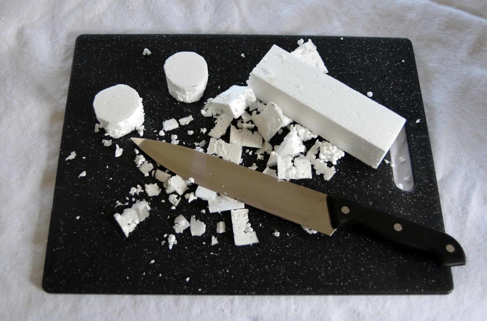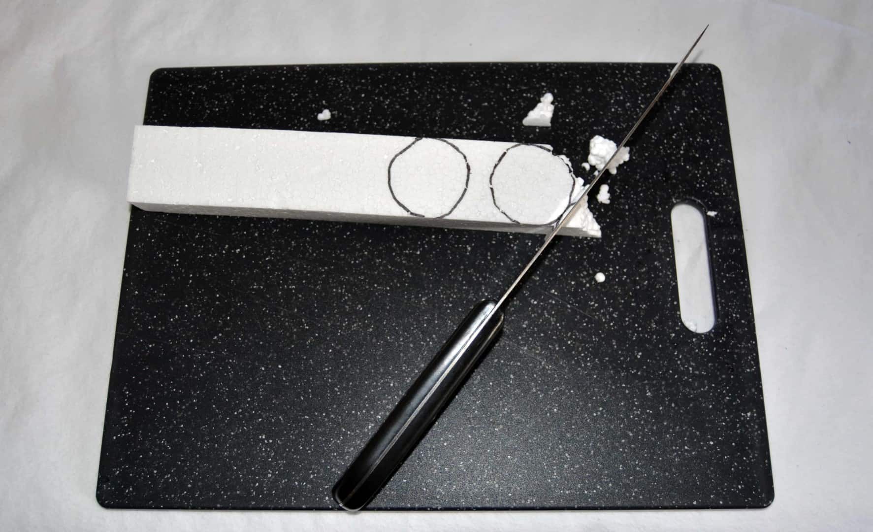 Für das Gesicht des Monsters schneiden wir ein rundes Stück aus einem Styroporteil.