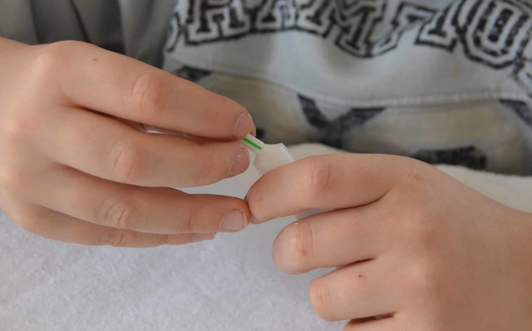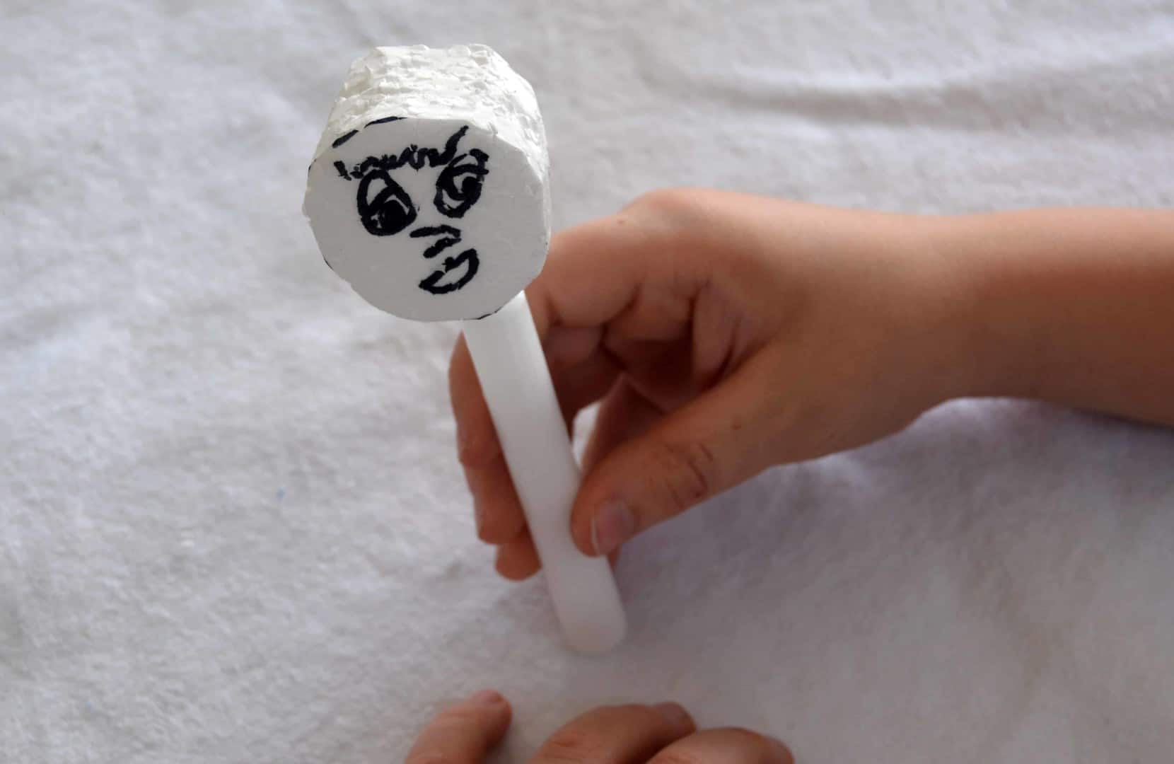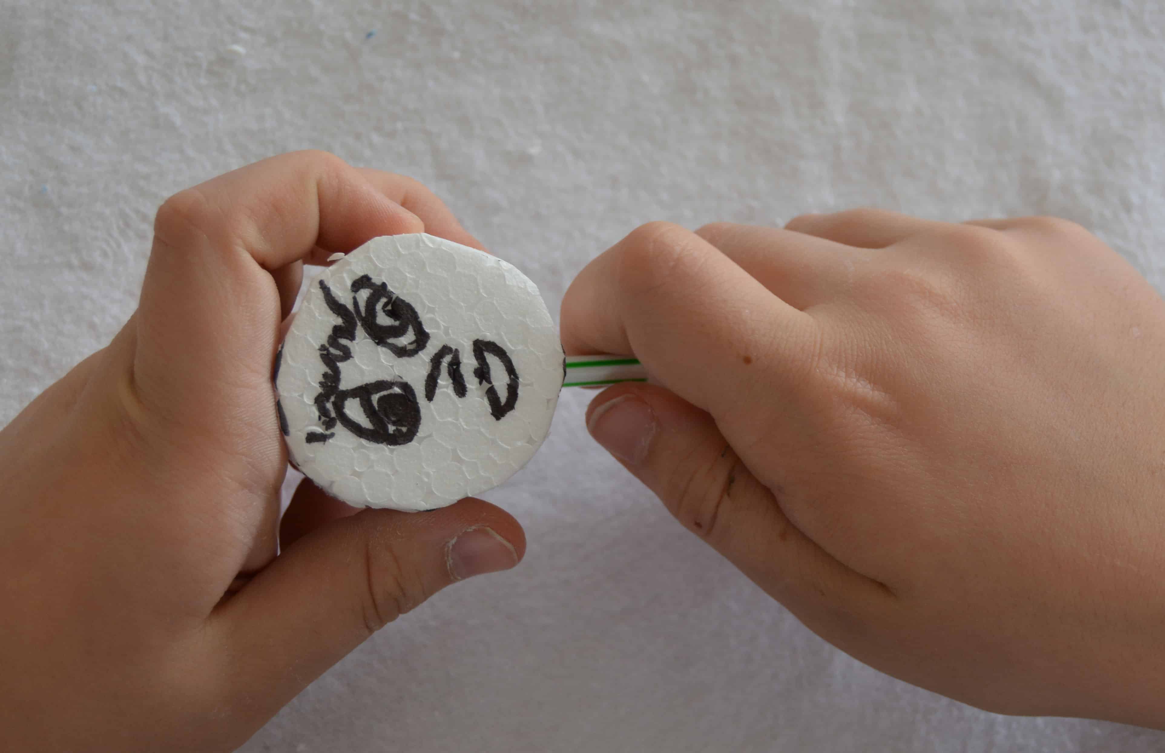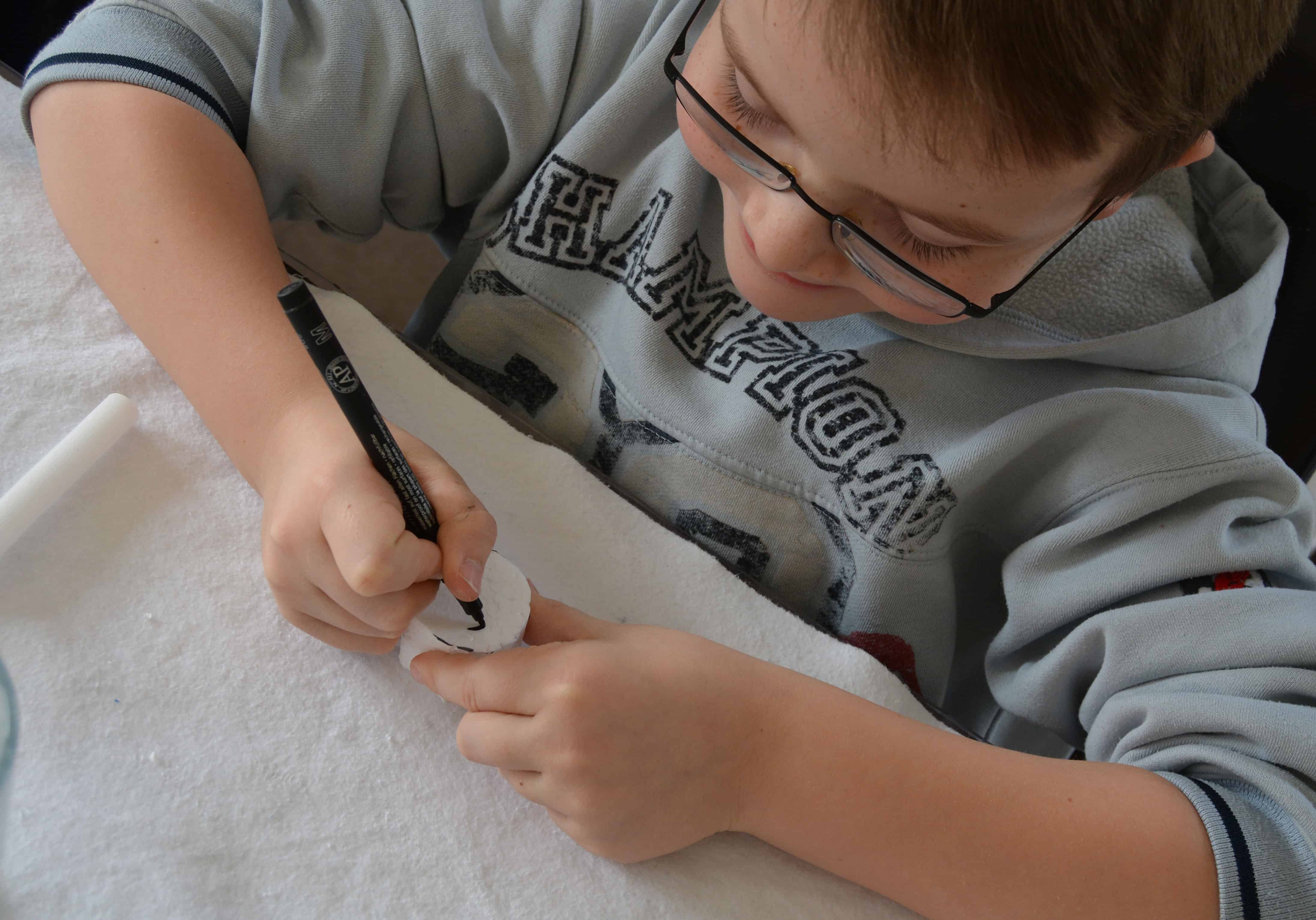 Das Monster bekommt mit einem wasserfesten Stift ein Gesicht.