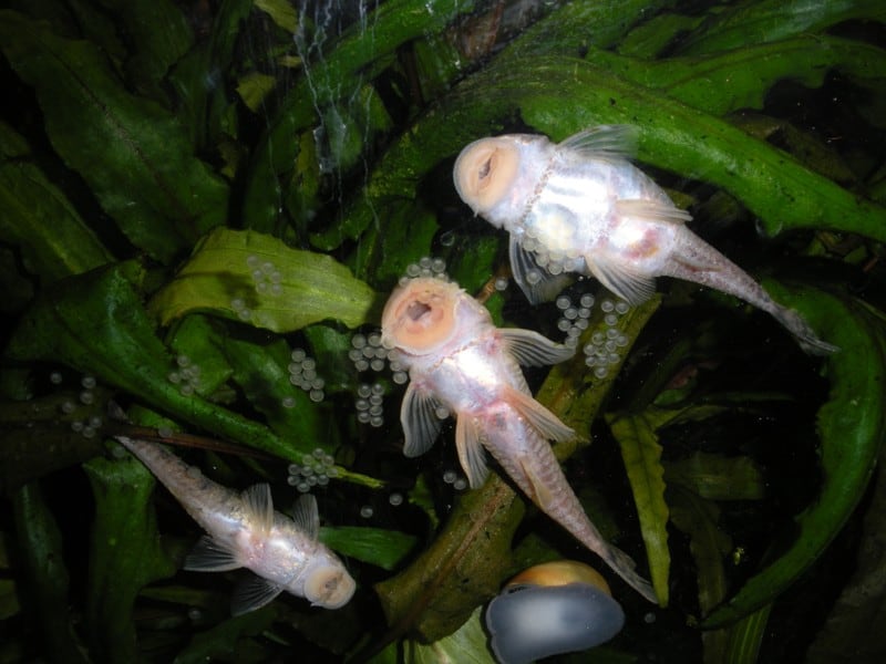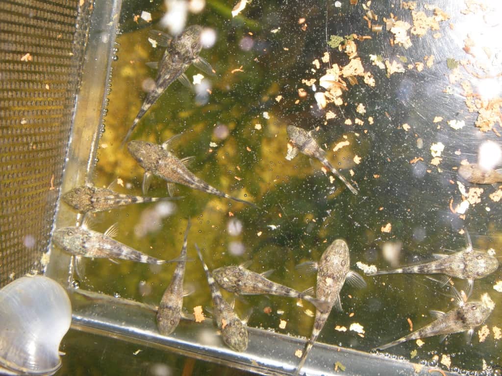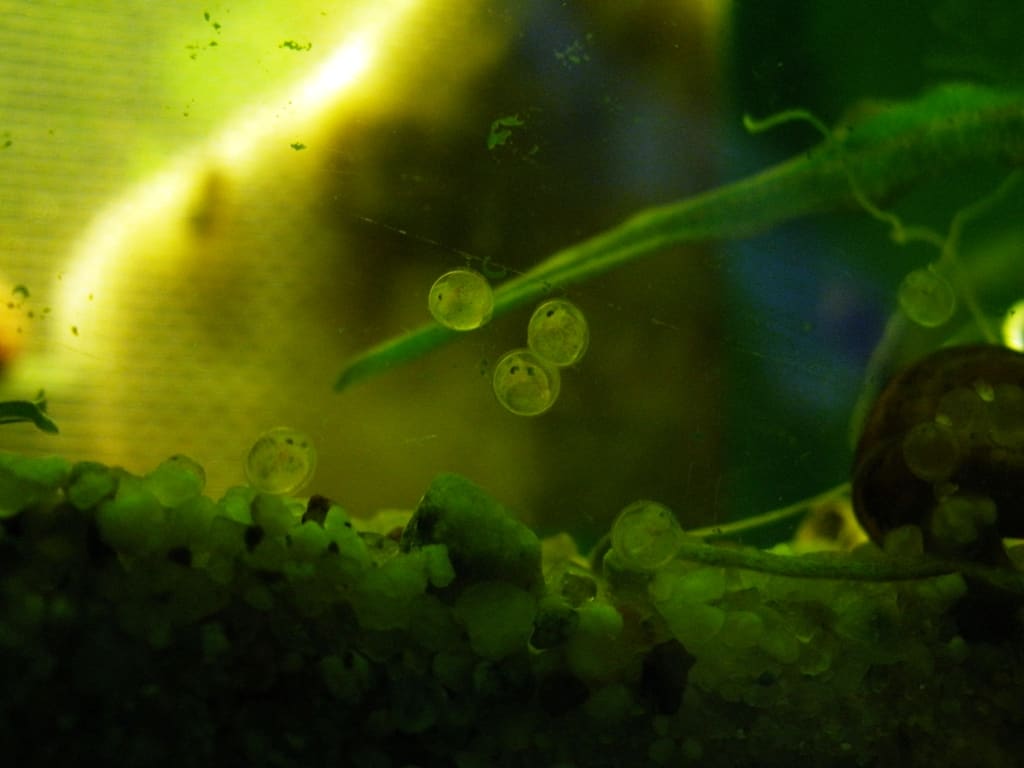 Ich habe mit 5 Tieren angefangen - zuerst hab ich 2 gekauft (mehr gabs nicht...) danach noch 3 dazu. Ziemlich bald darauf kam es zu einem ersten Gelege, das ich durch Zufall entdeckt habe, es befand sich hinter dem einen Innenfilter. Kurz vor dem Schlupf hab ich die Eier rausgetan (da war schon ein Baby geschlüpft) und einen Ablaichkasten überführt. Die Babies sind dann teilweise während des Absaugvorgangs geschlüpft. Den Ablaichkasten hab ich allerdings in einem anderen Aquarium gehabt, weil das viel größer war und mehr Platz geboten hat. Gefütttert hab ich sie anfangs mit Cyclops Eeze, zerfallenden Grünfuttertabletten, normalem Flockenfutter und auch anderen Futtertabletten. Die Kleinen sind überraschend schnell gewachsen. Ausfälle gabs zu meiner Verwunderung keine (im Gegensatz zu den Roten Hexenwelse, von denen von ca. 40 grad mal 7 übergeblieben sind). Die Kleinen wuchsen und wuchsen und irgendwann hab ich sie dann zu den anderen ins "kleine" Becken geben. Mittlerweile gabs da schon die nächsten Gelege... In den folgenden Monaten gab es nach jedem größeren (Kalt)Wasserwechsel Gelege... es kam gerade zu zu "Orgien", an denen mehrere Fische beteiligt waren. Gar nicht so viel später haben dann auch die ersten "Babies" abgelaicht.... Es wurden immer mehr und mehr. Da wars dann auch an der Zeit für ein größeres Becken, das ich mir anfertigen ließ. Außerdem habe ich viele der Kleinen dann verschenkt bzw. an Leute, die ich nicht kannte, verkauft, damit ich wenigstens die Futterdecken abdecken konnte, denn die sind ziemlich hoch geworden.... Nachdem offenbar durch Inzucht kurzfristig "Mopsköpfe" aufgetaucht sind, hab ich Ausschau nach frischem Blut gehalten und wurde auch noch fündig (bevor das Importverbot in Kraft getreten ist). Die neuen Fische waren kaum im Becken, als es schon munter weiterging mit der Eiablage.... Mopsköpfe sind bislang keine mehr aufgetaucht. Pausen gibts übrigens nur im Sommer, wenn es im Becken dann bis zu 35°C hat, dann scheint ihnen die Lust zu vergehen... aber kaum ist die Temperatur wieder annähernd normal, gehts munter weiter.... Derzeit wuselt es wieder gewaltig.