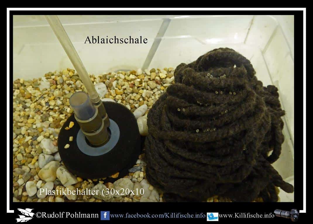 Procatopus similis sind Spal­tenlaicher und benötigen zum Wohlbefin­den Strömungen an der Wasseroberfläche durch z.B. etwas stärker eingestellte Luft­filter. Da ich nicht den ganzen Bodengrund des Aquarium mit Kies als Laichsubstrat bedecken wollte, sollte etwas Neues aus­probiert werden. Weitere Infos über Killifische unter: http://www.killifische.info/ auf Facebook: https://www.facebook.com/Killifische.info/
