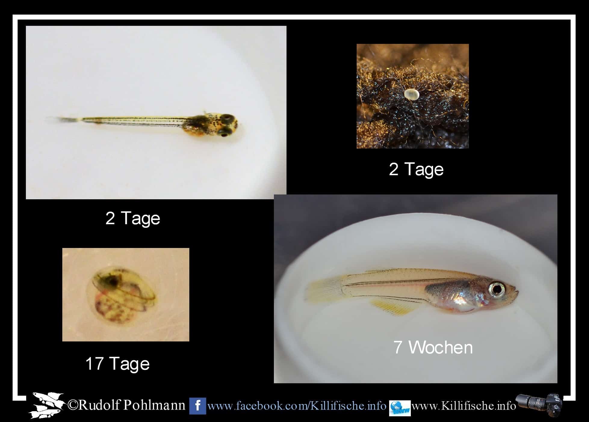 Ich bat Ralph Bayer, mir von den Procatopus similis eine kleine Gruppe zu einem Treffen der Regionalgruppe mit­ zubringen. Ich erhielt von ihm drei Pärchen in verschiedenen Größen. Der Züchter informierte mich, dass die Procatopussimilis gut im Kies ablaichen. Den Laich kann man mit einem Schlauch vom Kies absaugen und mit einem Sieb die Laichkörner aussie­ben. Die Eier werden dann bis zum Schlupf im Wasser gelagert. Leuchtaugenfische Procatopus similis sind etwa sieben Zentimeter große Schwarmfische. Sie leben in Nigeria und Kamerun in kleinen, schnell fließenden Bächen im hügeligen Regenwald. Diese Procatopus sind Spaltenlaicher: Im Gegensatz zu den meisten Killifischei­ern sind diese Laichkörner nicht klebend.