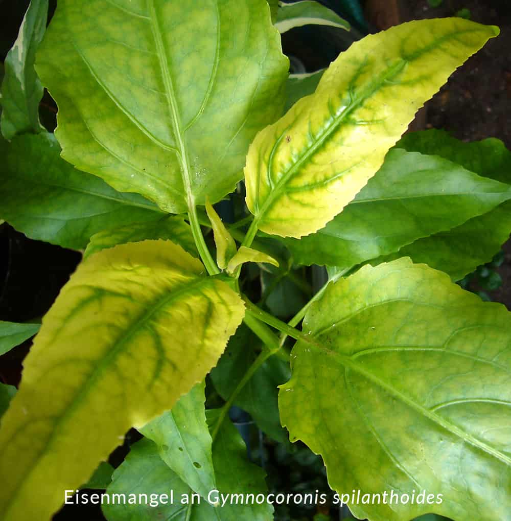 - Junge Blätter sind hellgrün bis zitronengelb, rosa oder weiß, Blattadern bleiben zunächst grün: Eisenmangel