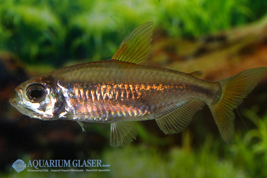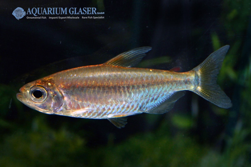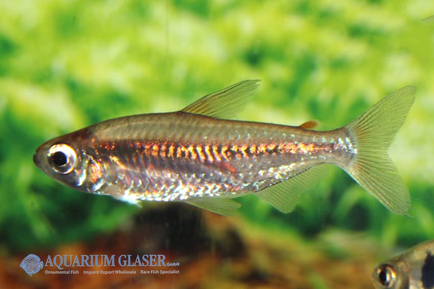 Alestopetersius cf. leopoldianus besticht durch lebhafte Schwarmdynamik, markante Schuppenfärbung und filigrane Flossen, die ihm eine elegante Silhouette verleihen. Sein ruhiges, soziales Verhalten und die empfohlene Gruppenhaltung machen ihn zu einem besonderen Zierfisch. Es sind keine besonderen Merkmale bekannt.