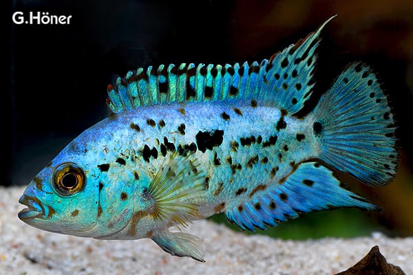 Diese Art ist strikt karnivor, da sie sich in der Natur überwiegend von kleinen Fischen und Krebstieren ernährt; eine reine Pflanzenkost würde zu Mangelerscheinungen führen, während eine ausschließliche Fleischkost ihrem natürlichen Bedarf entspricht und optimal verwertet wird. Als Hauptfutter im Aquarium empfiehlt sich ein hochwertiges, fleischhaltiges Trockenfutter, das etwa 70–80 % der Gesamtration ausmachen sollte. Zur abwechslungsreichen Ergänzung eignen sich 2- bis 3-mal pro Woche Lebend- oder Frostfutter wie Mückenlarven und Daphnien, wobei die Fütterung von 4–6 Mückenlarven pro Tier oder kleinen Portionen, die innerhalb von 3 Minuten vollständig aufgenommen werden, ideal ist. Futterreste sind stets zeitnah zu entfernen, da diese Tiere zu Überfressen neigen und kontrollierte Portionierung für ihre Gesundheit unerlässlich ist.