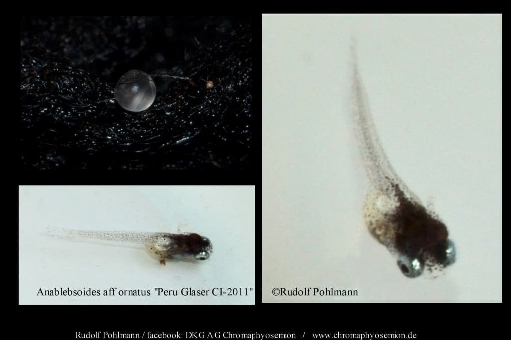 Anablebsoides aff ornatus kann unter artgerechten Bedingungen in einem gut bepflanzten Aquarium mit stabilen Wassertemperaturen zwischen 24 und 28 °C, einem pH-Wert von 6,5 bis 7,5 und weichem bis mittelhartem Wasser erfolgreich gezüchtet werden. Während der Paarungsperiode äußert sich ein intensives Balz- und Territorialverhalten, bei dem Männchen und Weibchen durch auffällige Farbveränderungen und die Wahl von festen Brutplätzen beeindrucken. Die Eiablage erfolgt bevorzugt an geeigneten Substraten oder in künstlich geschaffenen Höhlen, wobei beide Elternteile oft ein ausgeprägtes Brutpflegeverhalten zeigen, um die anfangs empfindlichen Jungtiere zu schützen und optimal zu versorgen. Die Aufzucht der Larven erfordert neben einer feinen und anfangs ausschließlich mikrofütterbaren Kost auch eine kontinuierliche Überwachung der Wasserparameter, um die ohnehin sensible Haltung der Jungfische zu gewährleisten. Besonders hervorzuheben ist, dass speziell beim Exemplar Anablebsoides aff ornatus „Peru Glaser CI-2011“ die elterliche Brutbetreuung und das charakteristische Reproduktionsverhalten für Zierfischliebhaber und Züchter langfristig attraktive Bedingungen für eine erfolgreiche Nachzucht bieten.