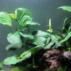 Anubias barteri ´Coin Leaf´ wächst langsam und genügt häufig als Akzentpflanze in größeren Aquascapes. Ihre kompakte und unaufdringliche Wuchsform macht sie ideal für die Platzierung an Felsen und Wurzeln. Die Pflanze zeigt eine gleichmäßige Blattentwicklung, die auch bei geringer Lichtzufuhr erhalten bleibt. Besonders im Zusammenspiel mit anderen Arten unterstützt sie ein harmonisches Gesamtbild im Aquarium.