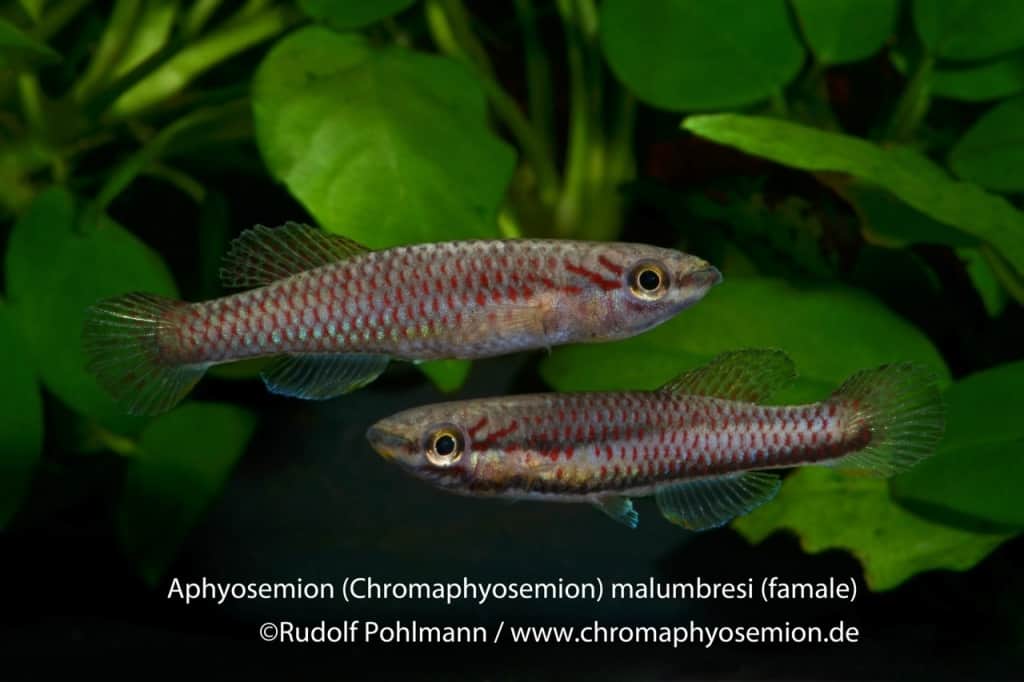 Aphyosemion (Chromaphyosemion) malumbresi zeigt markante zweistreifige Muster und brillante Farben. Bemerkenswert sind seine lebendigen Balztänze sowie das aktive, gesellige Verhalten, das den Fisch zu einem außergewöhnlichen Highlight in jedem Aquarium macht.