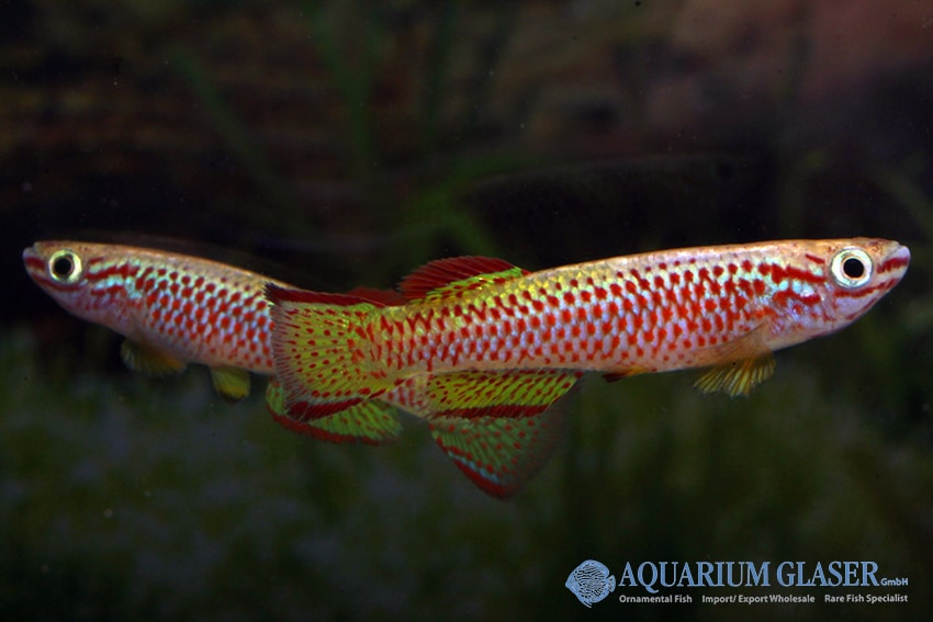 Aphyosemion gabunense Gelbe Gabunkilli zeigt leuchtend gelbe Färbung, feine Streifen und schlanken Körperbau. Der aktive Fisch besticht durch territoriales Verhalten und eine harmonische Gemeinschaft. Artgerechte Pflege unterstreicht seine Ausstrahlung.