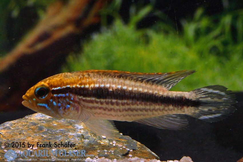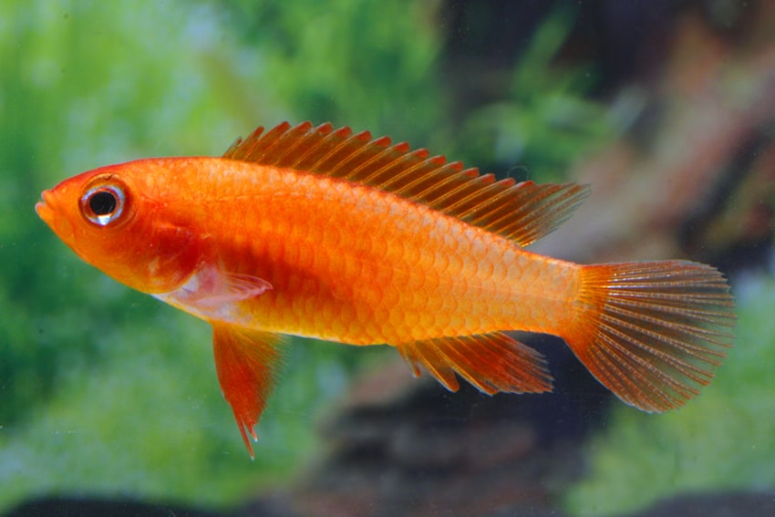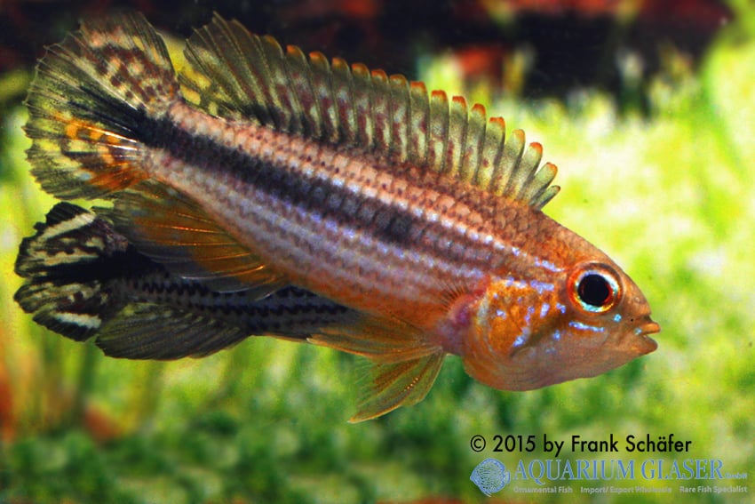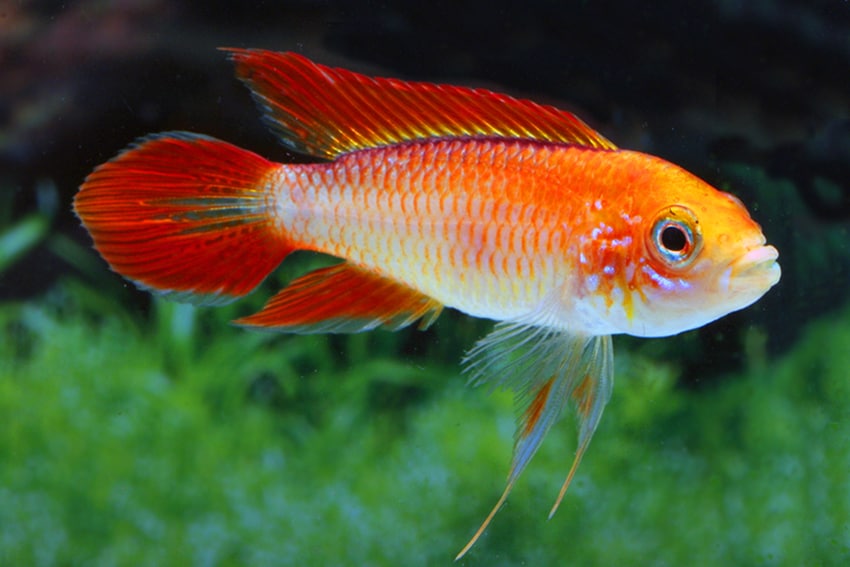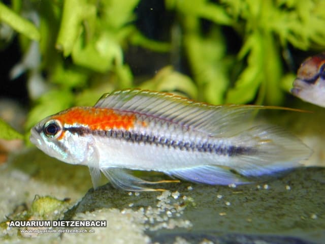 Apistogramma agassizii, auch Agassiz-Zwergbuntbarsch genannt, gehört zur Familie der Cichliden. Der kleine Fisch ist in den Flüssen des Amazonas beheimatet. Sein Körper ist kompakt und misst im Schnitt 4 bis 5 cm. Die Färbung variiert meist zwischen leuchtendem Gelb und Rot. Dunkle, feine Streifen verlaufen über den Körper und deuten Geschlechtsmerkmale an. Im natürlichen Lebensraum dominieren langsam fließende Gewässer mit sandigem Grund und dichtem Wasserpflanzenbewuchs. Diese Umstände bieten Schutz und Nahrung. Apistogramma agassizii zeigt ein ausgeprägtes Revierverhalten. Die Art betreut ihre Brut sorgfältig und wechselt oft ihr Revier. Im Aquarium sollten ähnliche Bedingungen geschaffen werden. Weiches, sauer-warmes Wasser mit einer Temperatur um 26 Grad und genügend Versteckmöglichkeiten sind nötig. Manche Quellen machen leichte Unterschiede bei den Umweltparametern geltend. Die hier genannten Zahlen und Beobachtungen beruhen auf Durchschnittswerten, da einzelne Angaben schwanken können.