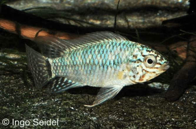 Apistogramma cf. caetei „Steel blue“ gehört zur Familie Cichlidae und wird oft mit Apistogramma caetei in Verbindung gebracht. Die Art zeigt einen steinblauen Körper mit dezenten roten Akzenten und gut erkennbaren dunklen Flecken. Mit durchschnittlich 5 cm erreicht der Fisch eine moderate Größe. Sein Körperbau und die leuchtenden Farben helfen, Artgenossen und Rivalen zu signalisieren. In seinem natürlichen Lebensraum, meist tropische Flussarme und ruhige Küstengewässer, zeigt er eine enge Bindung zur Umgebung. Dort herrscht meist ein Durchschnittstemperaturbereich von 26 Grad Celsius und ein pH-Wert um 6,5. Die Art verhält sich territorial, besonders während der Laichzeit, und betreibt sorgfältige Brutpflege. Sie passt sich gut an trübe oder klare Wasserbedingungen an, was ihr ein Überleben auch in Aquarien erleichtert. Im heimischen Aquarium sollte man ähnliche Wasserwerte und viele Versteckmöglichkeiten anbieten, um ihrem natürlichen Verhalten gerecht zu werden. Angaben zu genauen Werten weichen in manchen Quellen leicht ab, weshalb Durchschnittswerte verwendet werden.