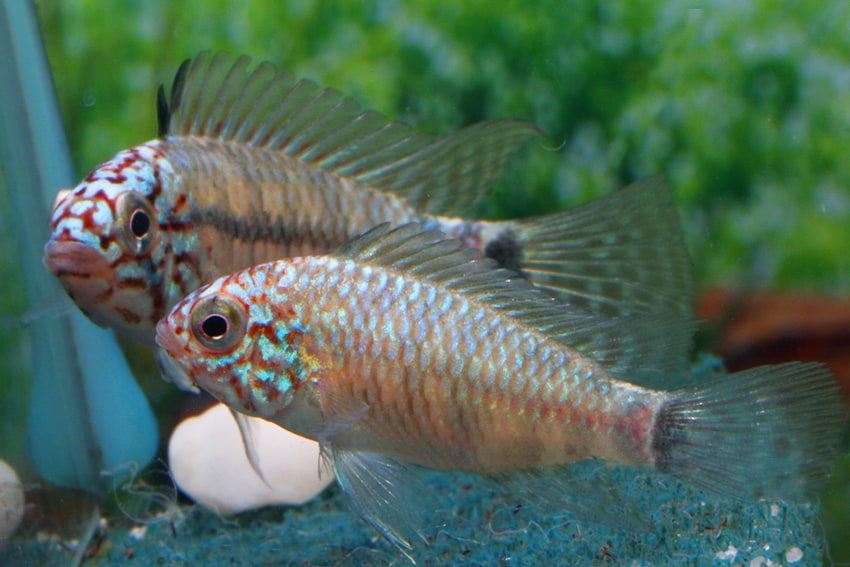 Apistogramma – Diese Art bevorzugt ein stark bepflanztes Aquarium mit weichem, leicht saurem Wasser (pH 5,5–7,0) und stabilen Temperaturen zwischen 26 und 28 °C, um optimale Zuchtbedingungen zu schaffen. Die Vorbereitung eines Rückzugsbereichs mit Wurzeln und Steinen unterstützt neben der natürlichen Umgebung auch das Paarungsverhalten, bei dem sich die Männchen ein Revier sichern und die Weibchen geeignete Laichplätze in Höhlen oder künstlichen Brutstätten wählen. Die Fortpflanzung zeichnet sich durch das heliophile Ablaichen der Eier an den Seiten der Brutverstecke aus, wobei der männliche Partner das Revier verteidigt und beide Elternteile eine intensive Brutpflege betreiben, die sogar das Auffangen und Füttern der Jungtiere umfasst. Eine behutsame Anhebung der Wasserqualität mit regelmäßigen Teilwasserwechseln und gezielte Fütterungsstrategien, beginnend mit Mikroorganismen wie Infusorien, sind wesentliche Faktoren, die den erfolgreichen Aufzug der Jungen unterstützen. Bei Apistogramma cf. caetei „Steel blue“ zeigen sich diese zuchtbedingten Besonderheiten besonders ausgeprägt, was den Reiz und die Pflege dieser faszinierenden Art unter Aquarianern weiter steigert.