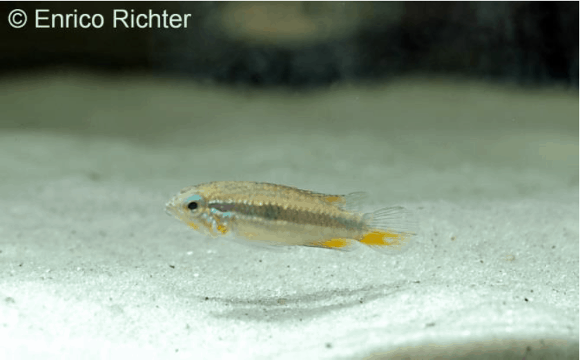 Apistogramma mendezi fasziniert mit markanten Schwanzstreifen, lebhaftem Sozialverhalten und kunstvollem Farbenspiel. Der Fisch zeigt ausgeprägte Balzrituale, kombiniert mit sanfter Aggressivität und einem harmonischen Miteinander im Aquarium. Es sind keine besonderen Merkmale bekannt.