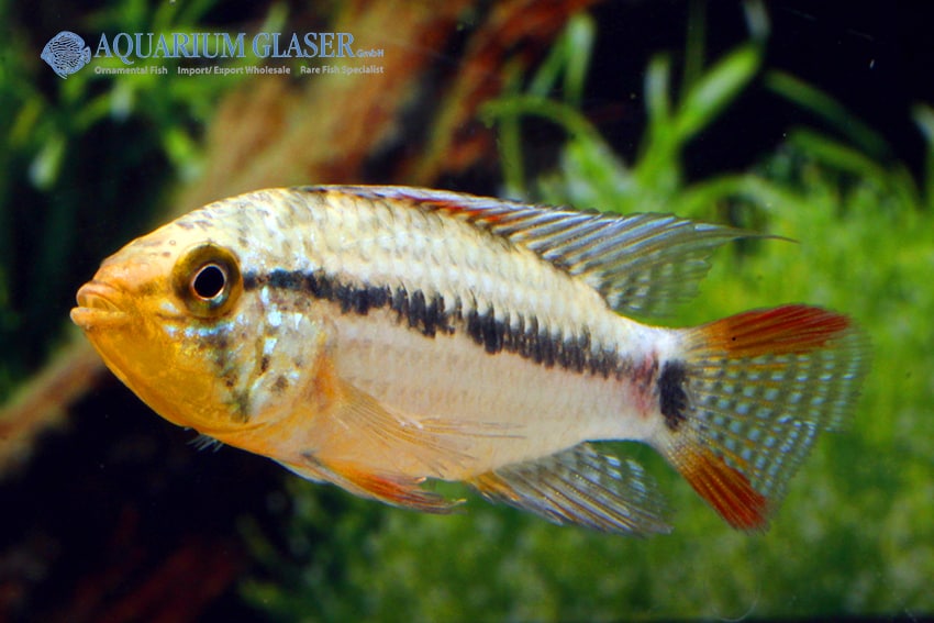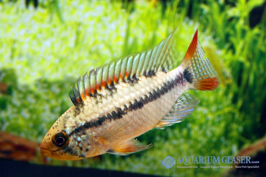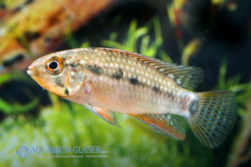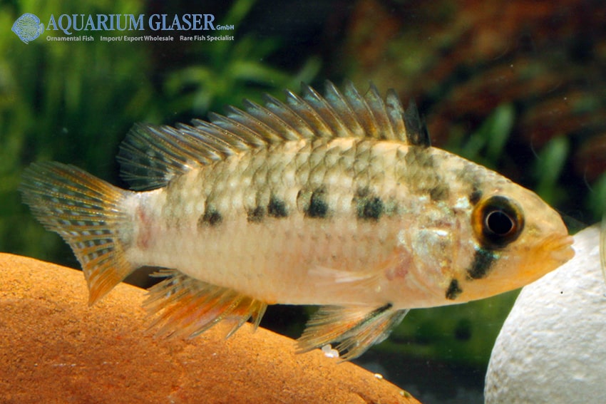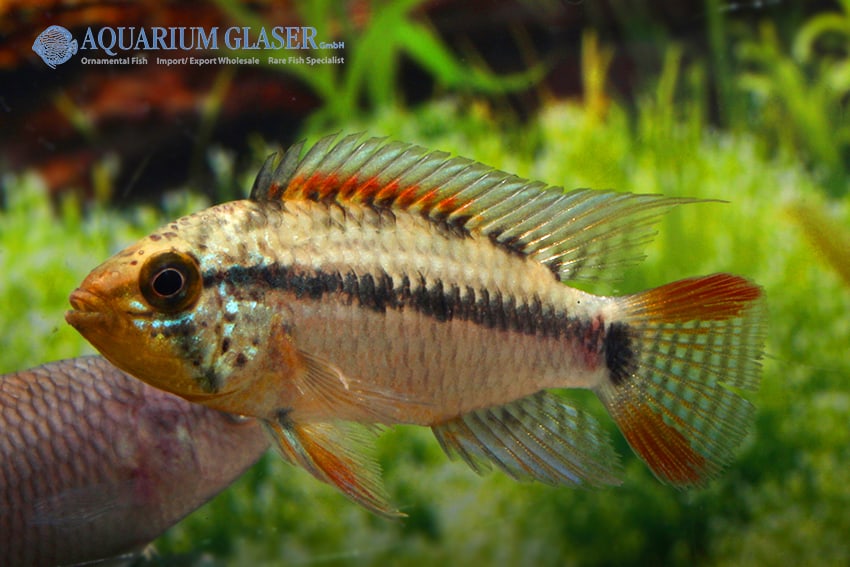 Apistogramma sp. Xingu Vielfleck zeigt ein markantes Farbenspiel mit lebendigen Flecken und eleganten Konturen. Ihr ausgeprägtes Balz- und Revierverhalten macht sie einzigartig. Eine liebevoll strukturierte Aquarienlandschaft mit zahlreichen Verstecken ist unerlässlich.