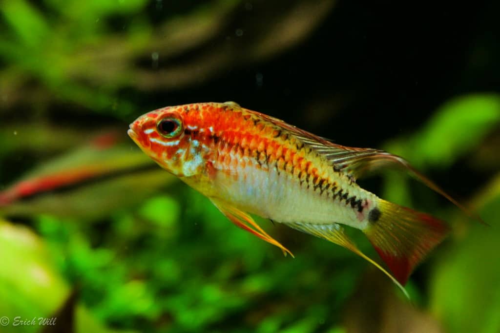Bis vor ein paar Jahren wurde diese Form auch als viejita gehandelt, auch renommierte Züchter – einige Fotos hier stammen von Tieren aus der Zierfischzucht Wilhelm – haben diese als viejita gehandelt. Heute ist aber ganz klar, dass es sich um Apistogramma macmasteri handelt.