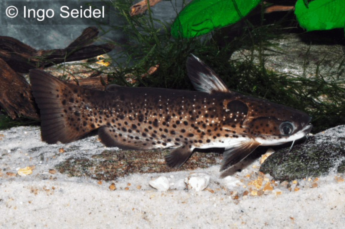Auchenipterichthys punctatus Punktierter Zamorawels zeigt ein markantes Punktmuster und stromlinienförmigen Körper. Er besticht durch einen lebhaften, aber zurückhaltenden Schwimmstil und ist in Gemeinschaftsaquarien pflegeleicht. Sein soziales Wesen verleiht ihm einen besonderen Charme.