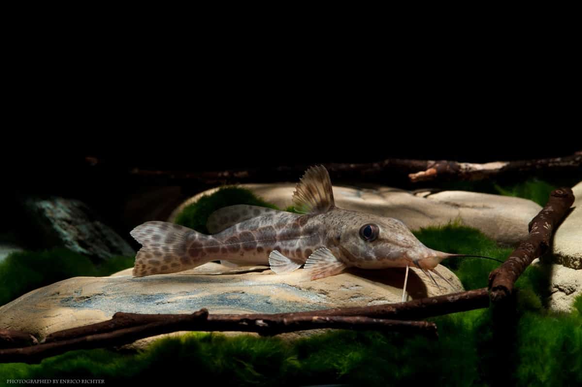 Auchenoglanis occidentalis Giraffenwels besticht durch sein auffaelliges, streifenartiges Muster und eleganten Koerperbau. Der nachtaktive Fisch zeigt ruhiges, bedaechtnises Verhalten und benötigt zahlreiche Versteckmoeglichkeiten sowie behutsame Pflege.