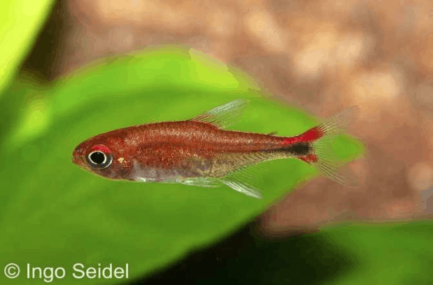 Axelrodia riesei Roter Pfeffersalmler beeindruckt mit intensiver Rotfärbung, feinen Streifen und lebhaftem Schwarmverhalten. Sein ruhiges, soziales Naturell erfordert behutsame Betreuung und eine naturnahe Aquariengestaltung. Es sind keine besonderen Merkmale bekannt.