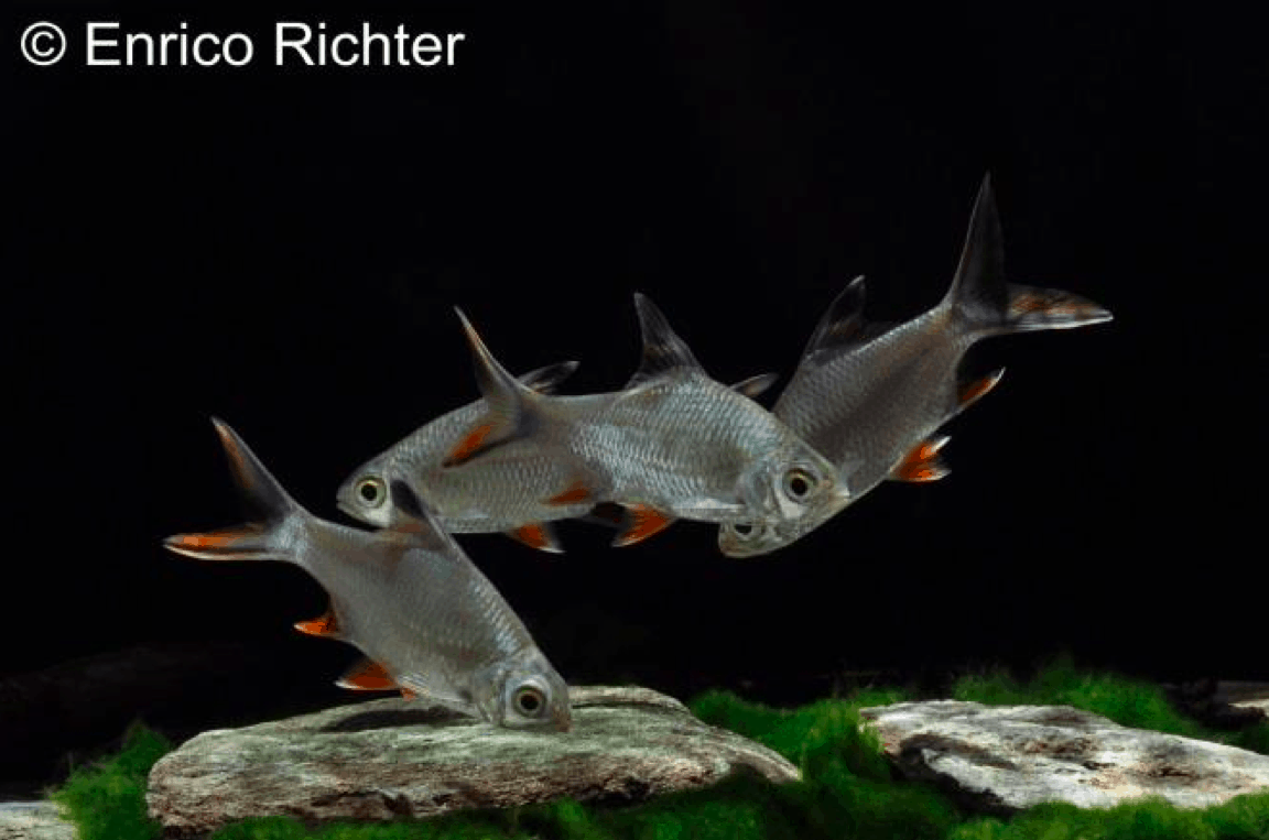 Barbonymus schwanenfeldii – Brassenbarbe „Gold“ bewohnt in ihrer natürlichen Umgebung die weich fließenden und oft leicht überschwemmten Gewässer Südostasiens, etwa in Flussläufen, Nebenflüssen und Sumpfgebieten, die durch eine dichte Vegetation und üppige Uferbereiche gekennzeichnet sind. In diesen aquatischen Habitaten herrschen in der Regel warme Temperaturen um die 24–28 °C, ein leicht saures bis neutrales pH‑Niveau sowie eine moderate Wasserhärte, während der hohe Gehalt an organischen Stoffen und Huminsäuren dem Gewässer ein leicht getrübtes Erscheinungsbild verleihen kann. Die Brassenbarbe „Gold“ findet hier ideale Lebensbedingungen, die durch variable Wasserstände und saisonale Überschwemmungen zusätzlich geprägt sind, wodurch umfangreiche Nährstoffvorkommen und natürliche Rückzugsmöglichkeiten sowie reichlich Nahrung in Form von Pflanzenmaterial und kleinen wirbellosen Tieren entstehen.
