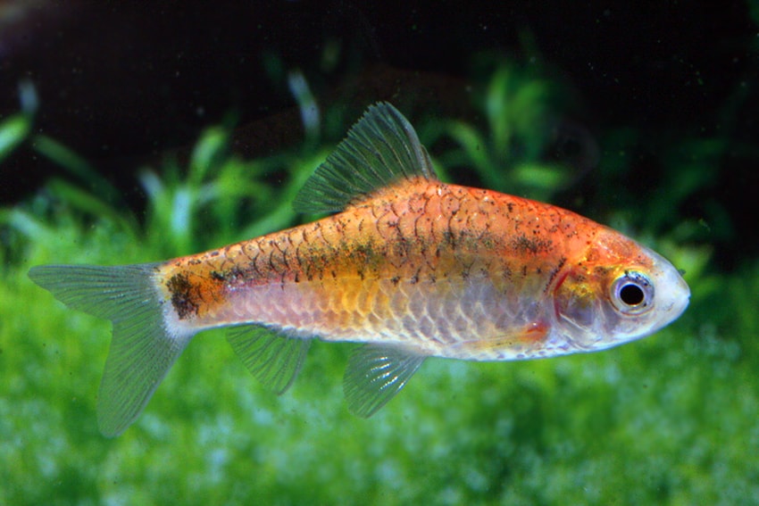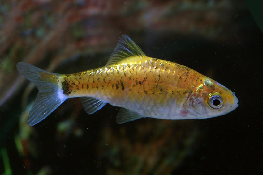 Barbus Schuberti – Brokatbarbe Koi beeindruckt durch sein schillerndes Schuppenmuster und farbenfrohe Akzente. Der aktive, gesellige Schwarmfisch zeigt ruhiges Sozialverhalten und elegante Bewegungen. Sein markantes Brokatbild macht ihn zum besonderen Blickfang.