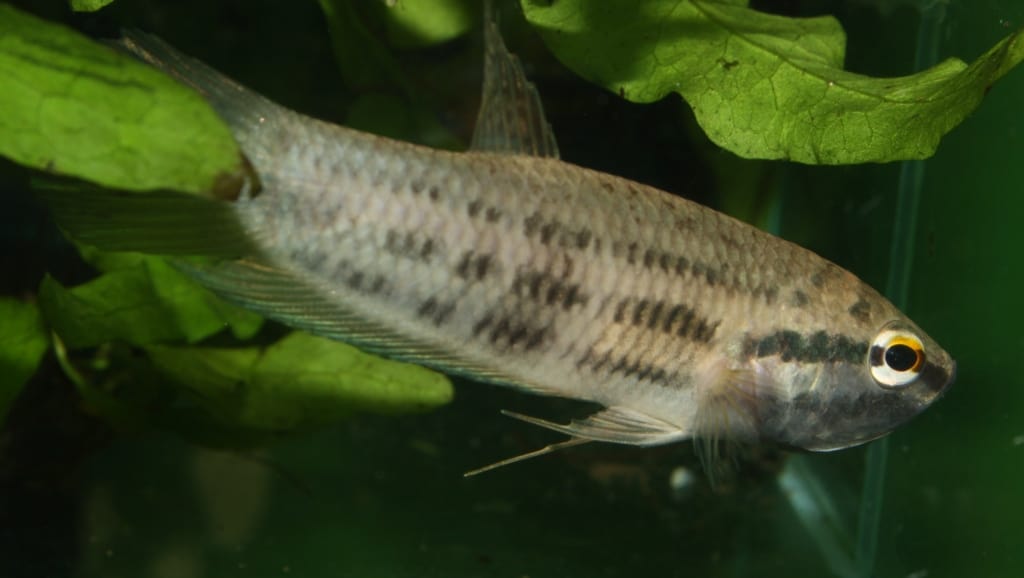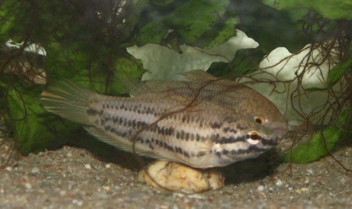 Diese Art ist ein fakultativer Karnivor, der sich in der Natur überwiegend von tierischer Kost wie Insektenlarven und kleinen Krebstieren ernährt, wobei eine reine Pflanzenkost zu Mangelerscheinungen führen würde, während eine ausschließliche Fleischkost die Verdauung belasten und das Nährstoffspektrum einengen kann. Im Aquarium sollte das Hauptfutter etwa 70–80 % der Tagesration ausmachen und aus hochwertigem, fleischhaltigem Trockenfutter bestehen. Ergänzend empfiehlt sich zwei- bis dreimal pro Woche die Gabe von Lebend- oder Frostfutter wie Artemia und Mückenlarven, um die natürliche Nahrungsvielfalt zu simulieren; gelegentlich können auch blanchierte Gemüsestücke wie Zucchini oder Spinat angeboten werden, wobei diese nur in kleinen Mengen gereicht werden sollten. Die Fütterung erfolgt idealerweise zwei- bis dreimal täglich in Portionen, die innerhalb von drei Minuten vollständig aufgenommen werden, alternativ können pro Mahlzeit vier bis sechs Mückenlarven pro Tier angeboten werden; Futterreste sind stets zeitnah zu entfernen, da diese Art zu Überfressen neigt und kontrollierte Portionierung für die Gesunderhaltung unerlässlich ist.