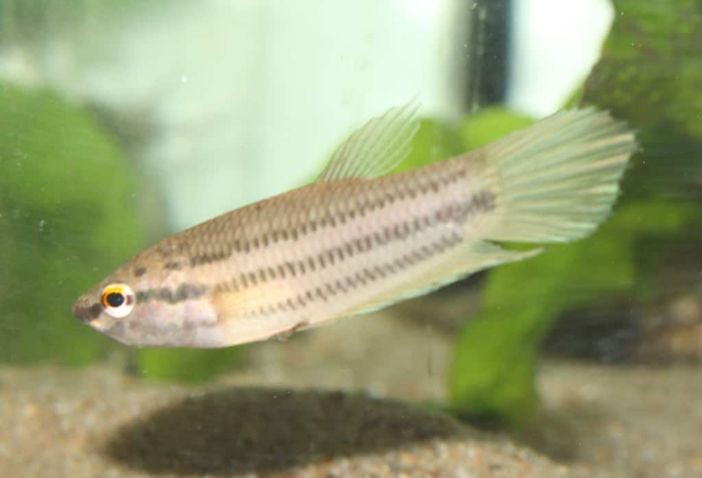 Weibchen: Kürzere, dezentere Flossen mit insgesamt unscheinbarerer Farbgebung und leicht rundlicherem Körperbau, was häufig auf die Eierbildung zurückzuführen ist.