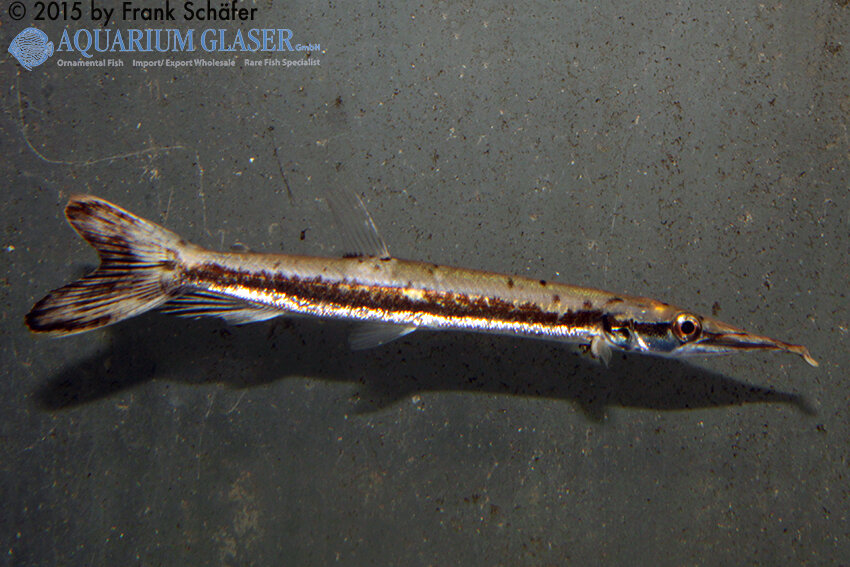 Boulengerella cuvieri ist ein Fisch aus der Ordnung Characiformes und der Familie Ctenoluciidae. Der wissenschaftliche Name lautet Boulengerella cuvieri. Er hat einen schlanken, langgestreckten Körper mit einem spitzen Maul. Die durchschnittliche Körperlänge liegt bei 15 bis 18 cm. Die Färbung ist silbrig mit dunklen Streifen, was ihn gut tarnt. Boulengerella cuvieri lebt in warmen Süßwasserflüssen Südamerikas. Er bewohnt langsame Fließgewässer und weichen Grund, wo er in dichten Pflanzen schützt. Der Fisch zeigt ein geduldiges Jagdverhalten und schleicht seine Beute leise an. Er passt sich an geringe Sauerstoffwerte an und reagiert schnell auf Gefahren. In freier Natur herrschen Temperaturen von etwa 26 bis 28 Grad. Im Aquarium braucht er viel Platz, Verstecke und eine stabile, warme Umgebung. Zierfischhalter sollten die Wasserwerte gut kontrollieren, um Stress zu vermeiden.
